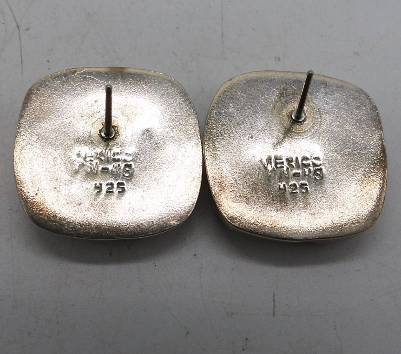 SQUARE STERLING TAXCO EARRINGS (TN-49 MEXICO 925) NO BACKS. THREE OTHER PAIR OF PIERCED STERLING EARRINGS. (16.5 DWT)