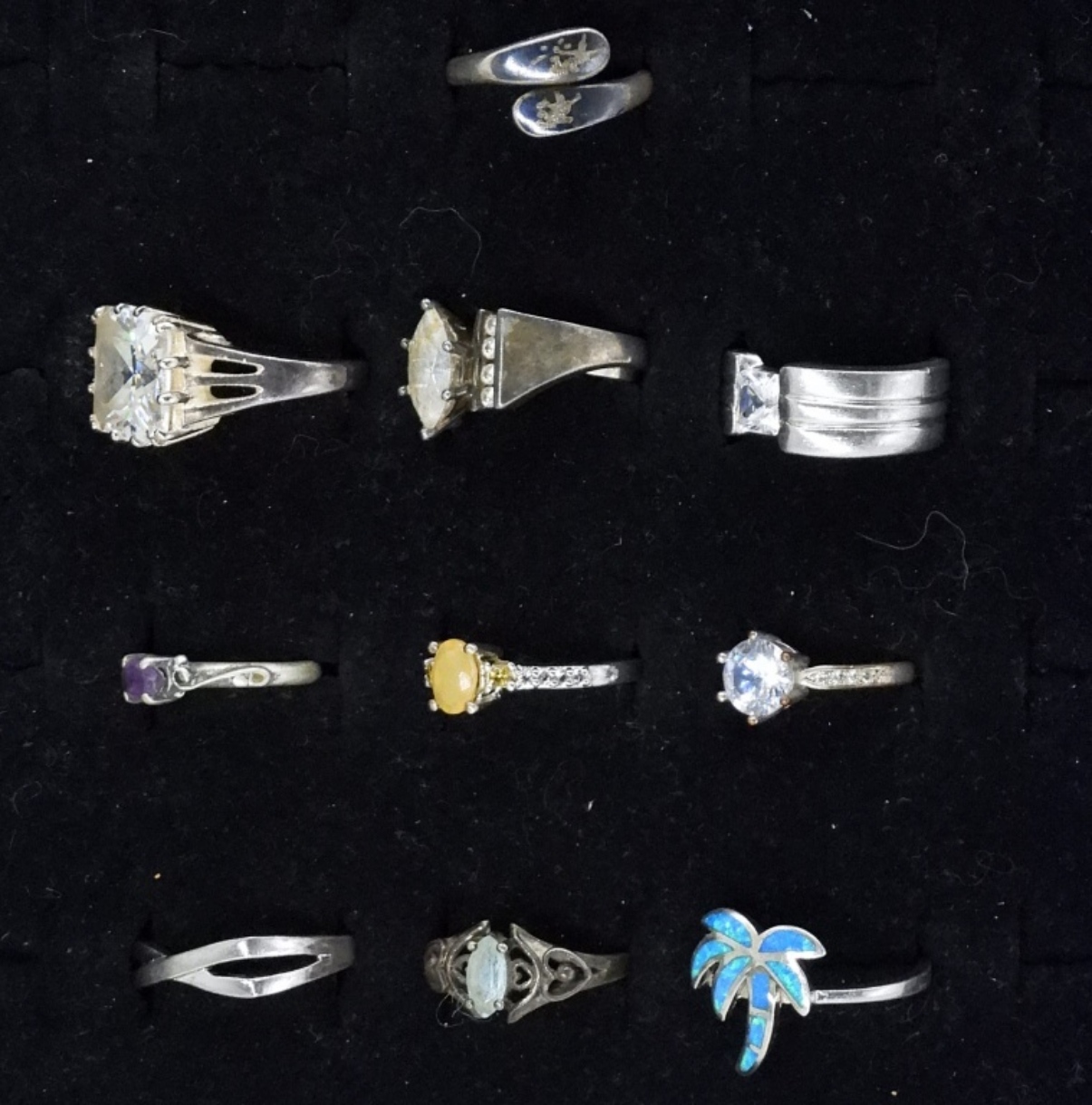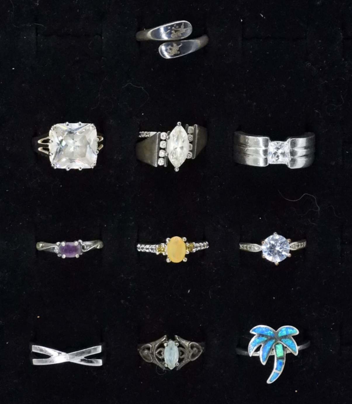 ELEVEN STERLING RINGS. SIZES 5-9 (25 DWT)