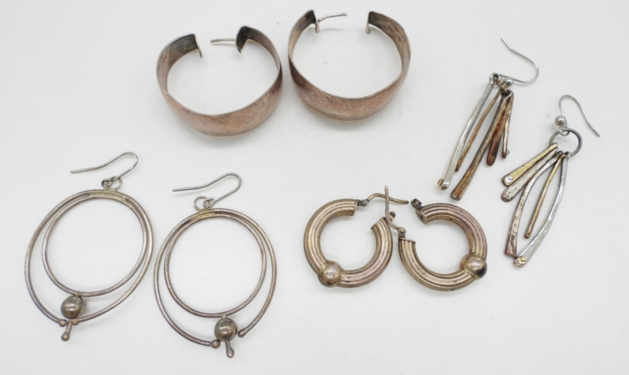 22 DWT. PIERCED DANGLE & HOOP EARRINGS. (2) PAIRS STAMPED STERLING OR 925.