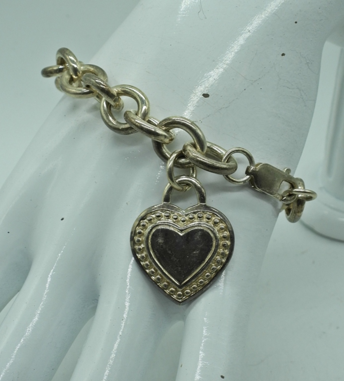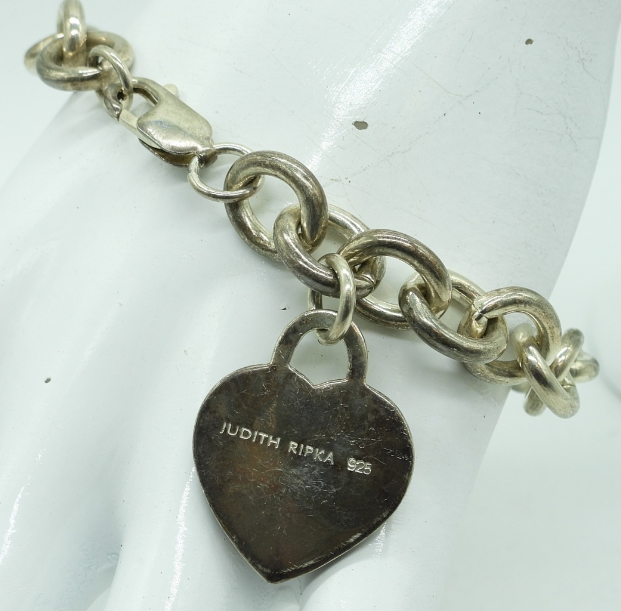 JUDITH RIPKA STERLING HEART BRACELET, 8″. 33.5 DWT