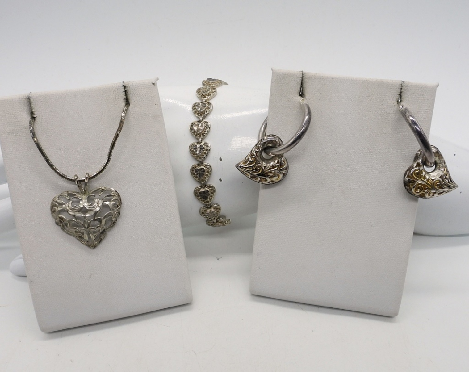 NECKLACE, 16″. BRACELET 7″. PIERCED HOOP EARRINGS. (18.1 DWT)