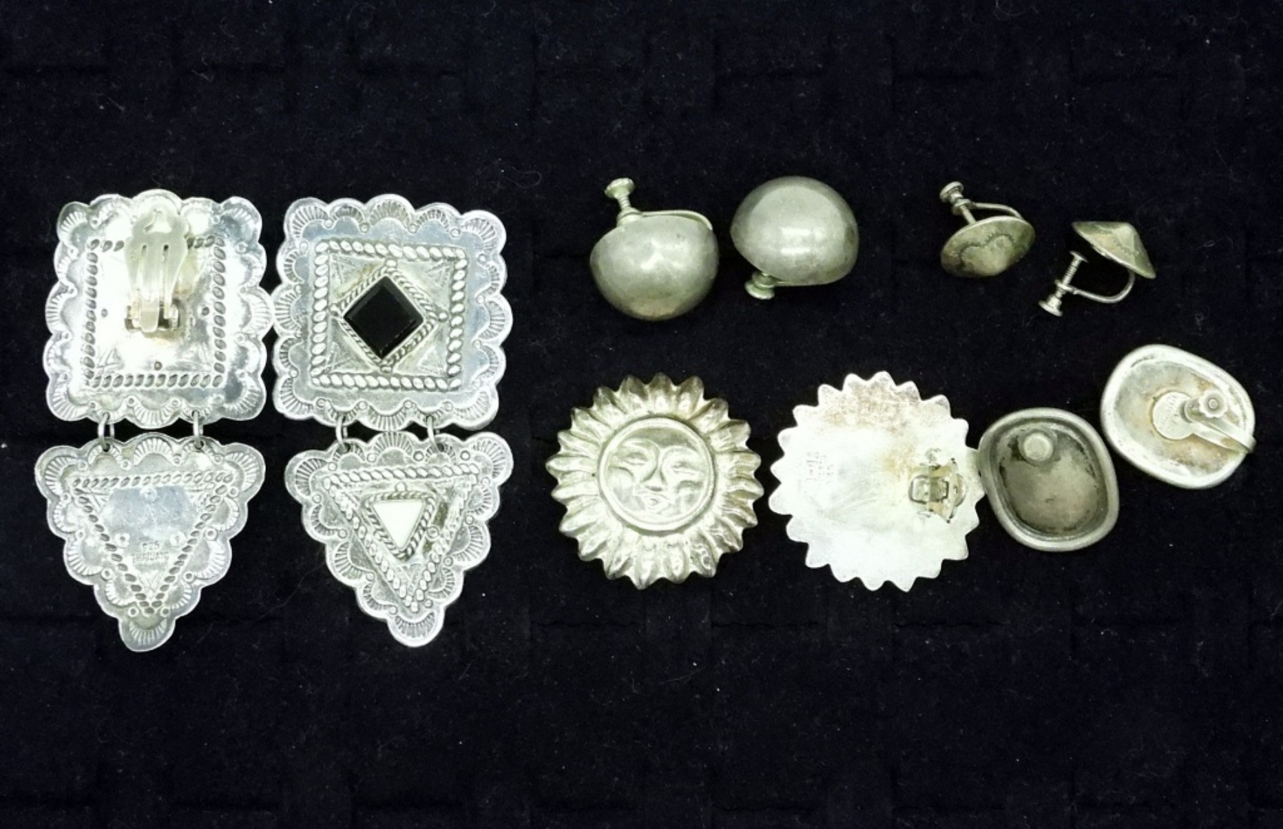 FIVE PAIR OF VINTAGE STERLING CLIP ON AND SCREW BACK EARRINGS. 42 DWT