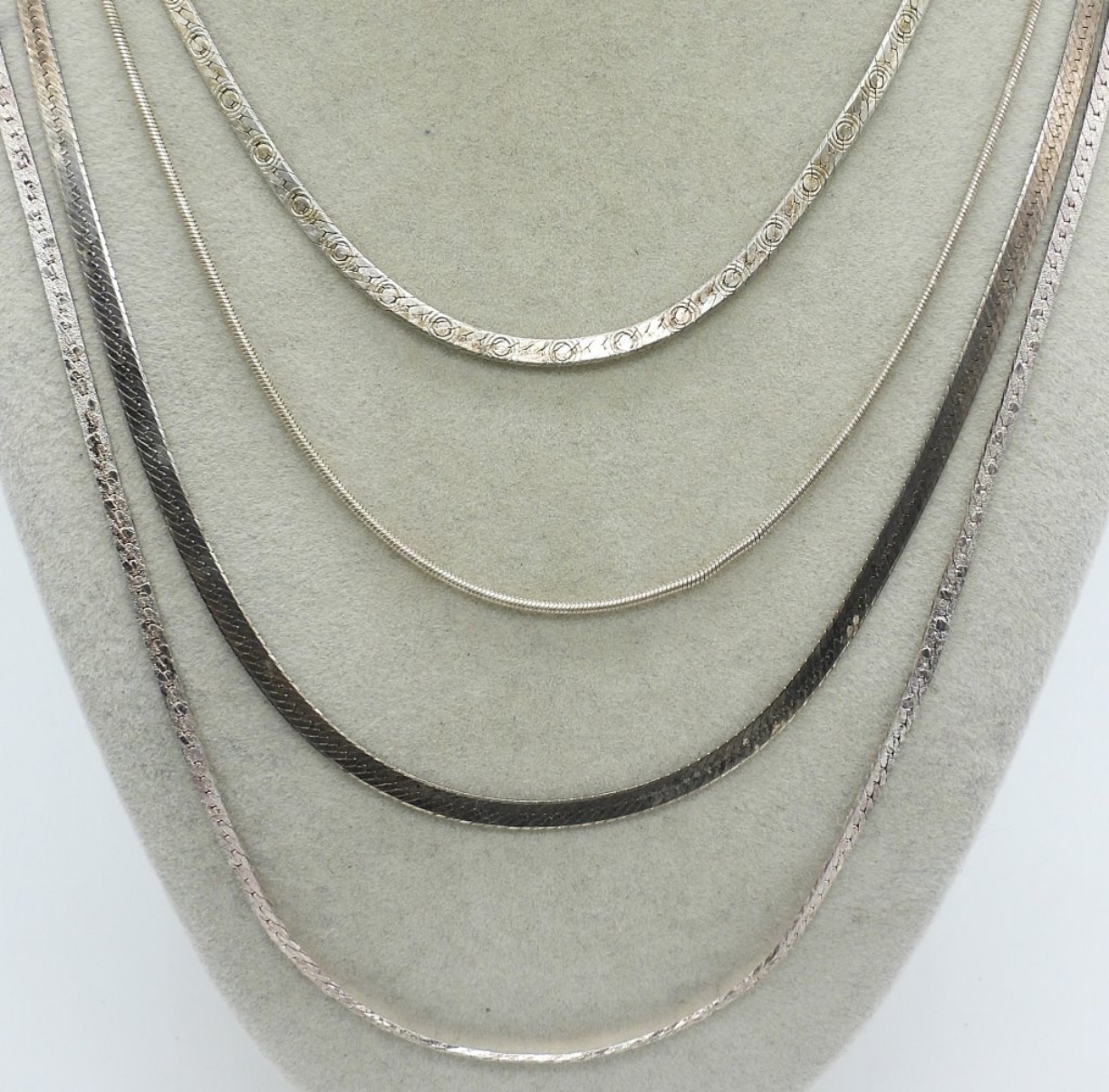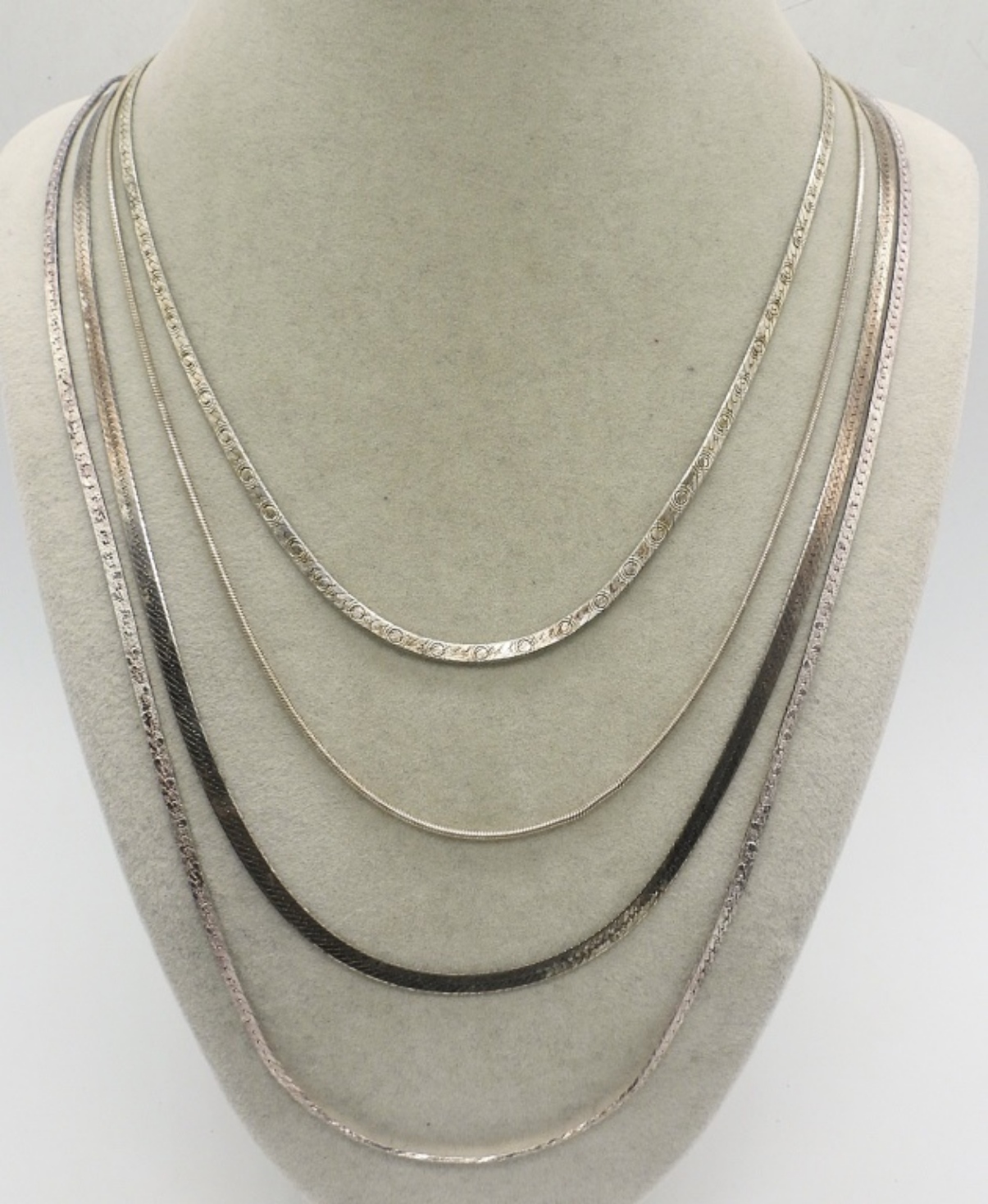 FOUR STERLING CHAINS. 18-30″. (21 DWT)