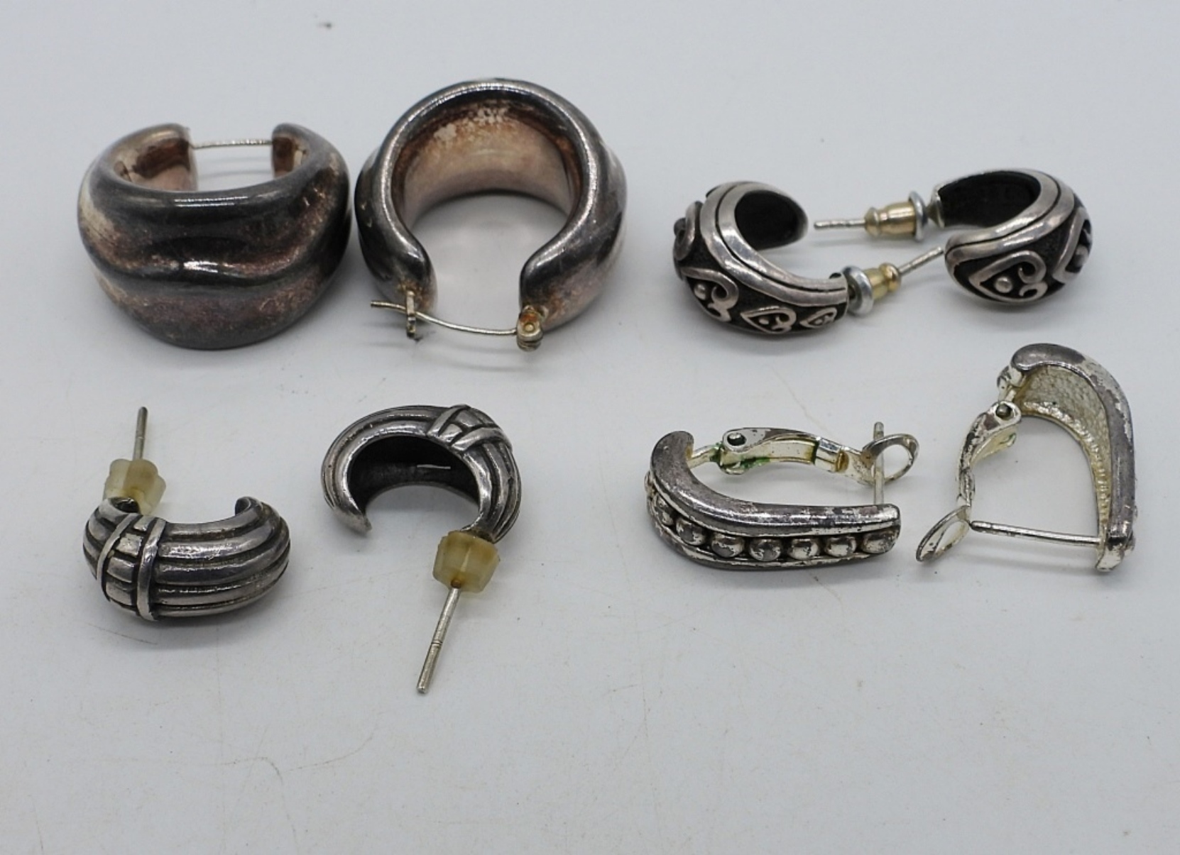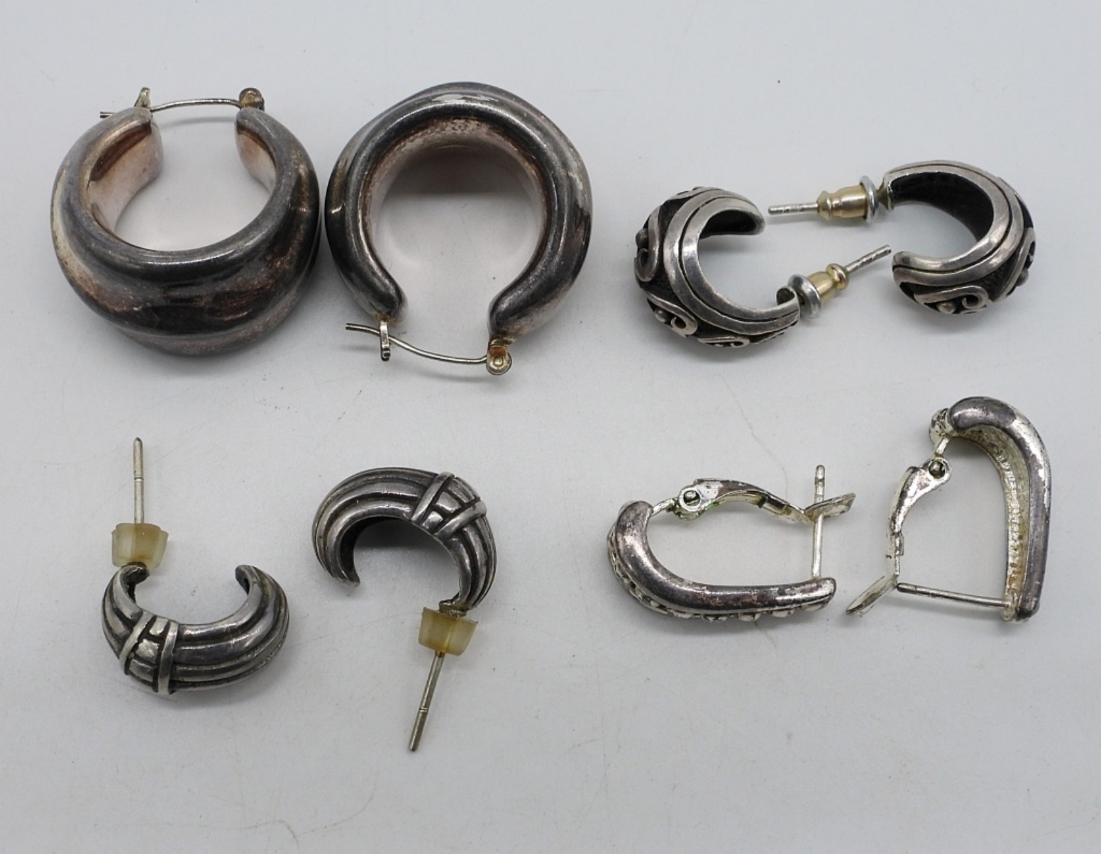 FOUR PAIR OF STERLING HOOP EARRINGS. (17.4 DWT)