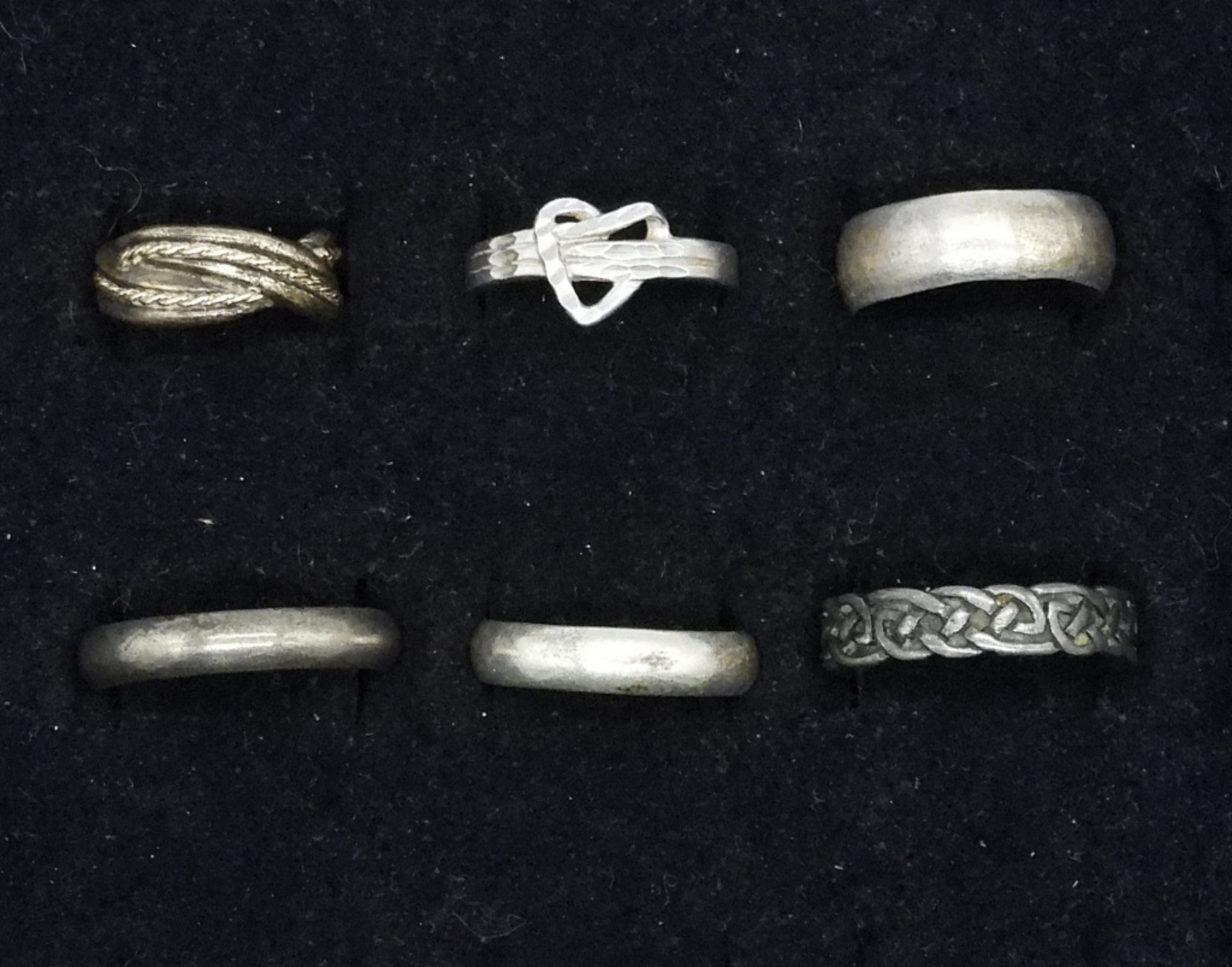 SIX STERLING BAND RINGS. 5-11 (18.5 DWT)