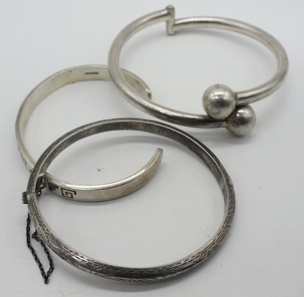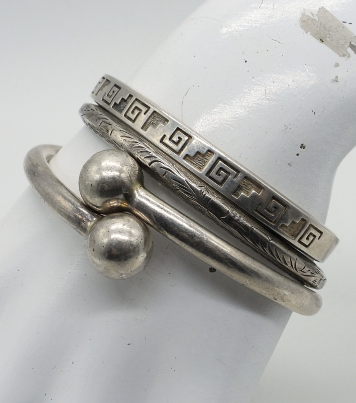 THREE STERLING BRACELETS. 7-8″. (26.5 DWT)