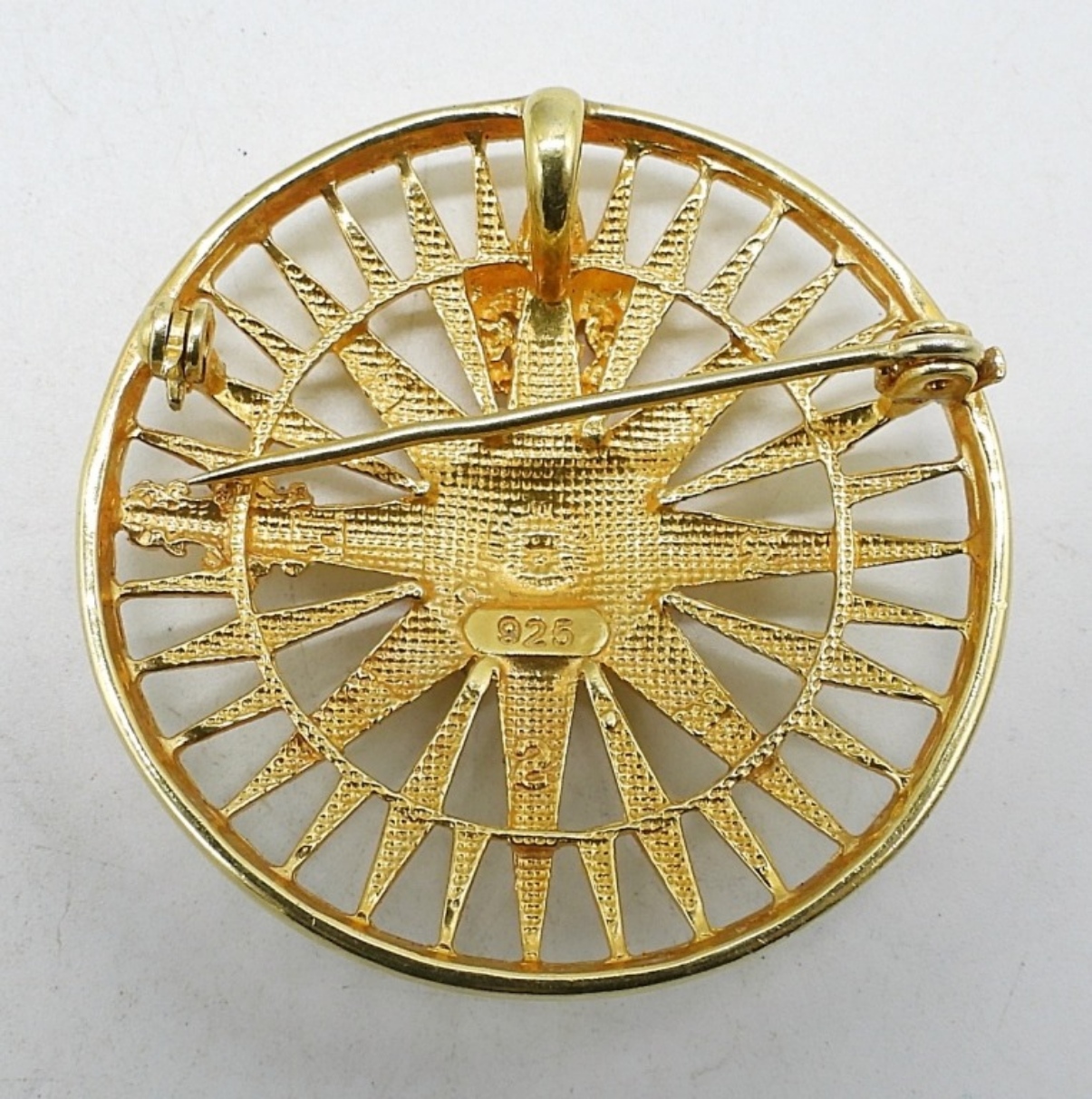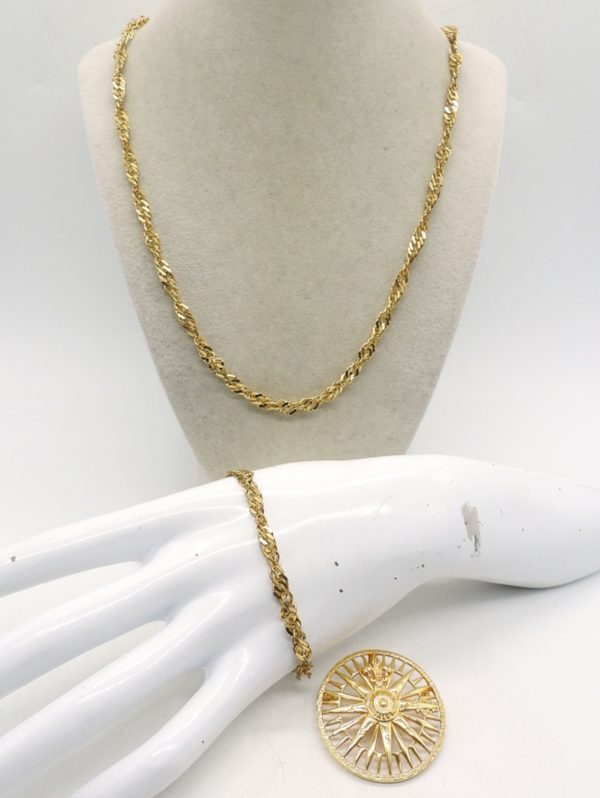 STERLING, GOLD TONE NECKLACE 25″, MATCHING BRACELET 8″. GOLD TONE COMPASS PIN/PENDANT, STERLING. 2″. (24.4 DWT)
