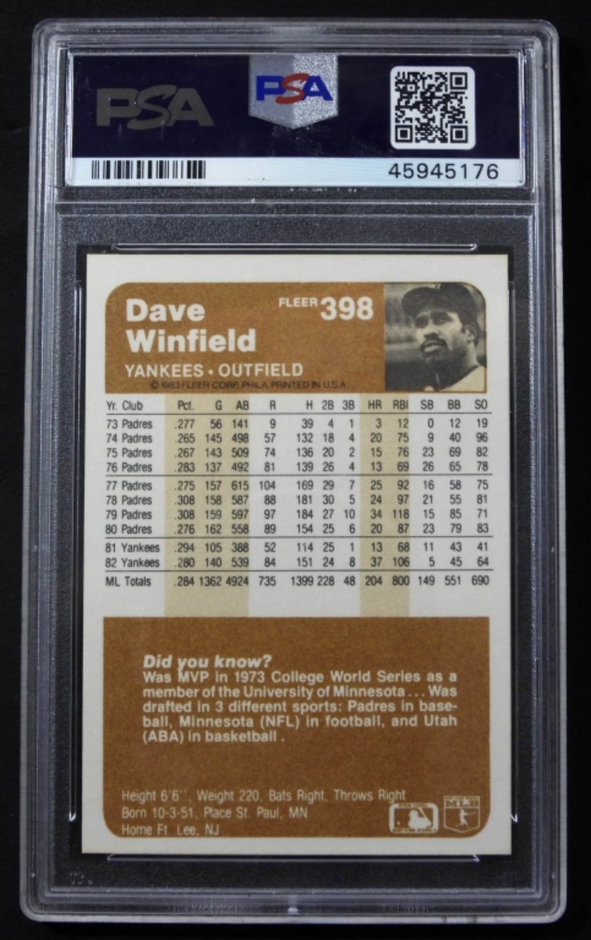 1983- FLEER- #398- DAVE WINDFIELD- PSA- 9 MINT. PREOWNED.
