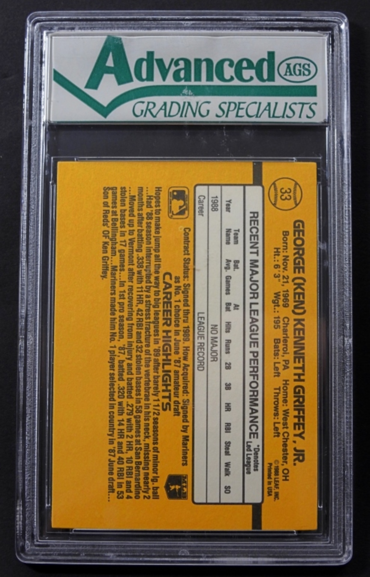 1989-DONRUSS- #33 KEN GRIFFEY JR- ADVANCED- 9 MINT. PREOWNED.