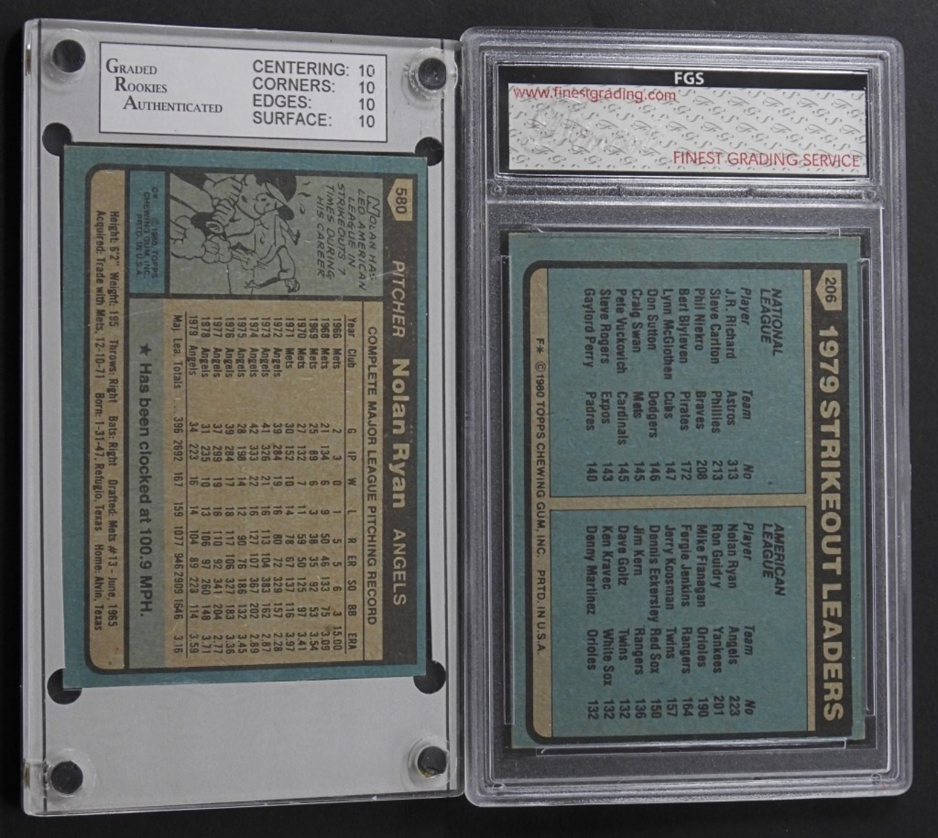 1980-TOPPS # 206- NOLAN RYAN- FGS- 7 NR-MINT. 1980- TOPPS- #580- NOLAN RYAN- GRADED ROOKIES AUTHENTICATED- 10 GEM MINT. PREOWNED.