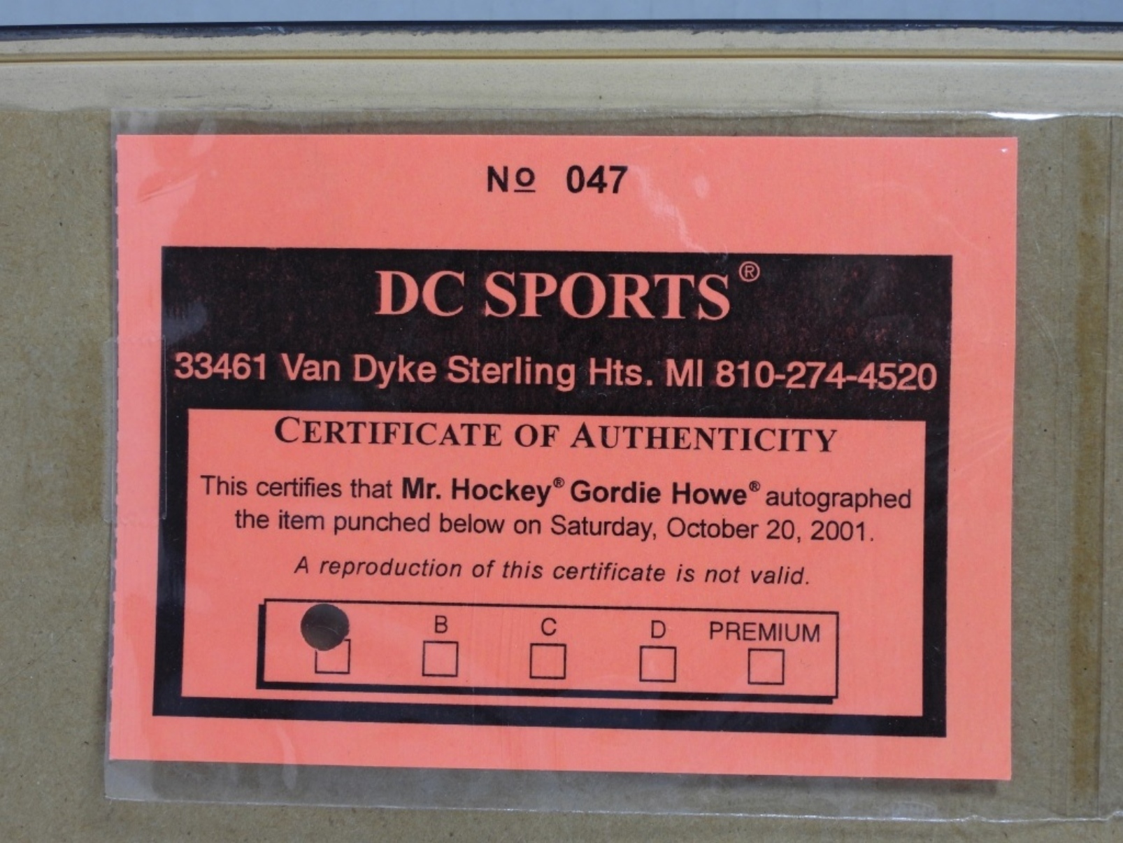 VERY NICE DISPLAY PIECE 27×17- AUTOGRAPH by GORDIE HOWE “Mr HOCKEY” HOF 1972 RED WINGS EMBLEM / COA by DC SPORTS UNVERIFIED