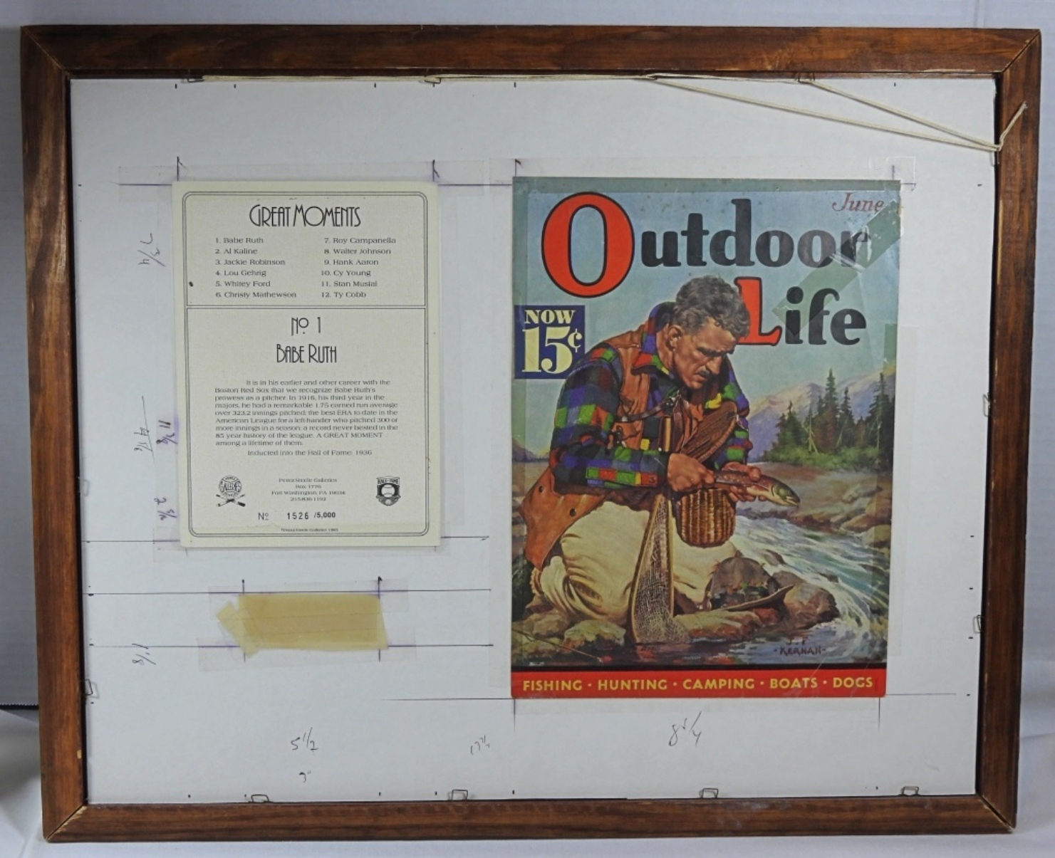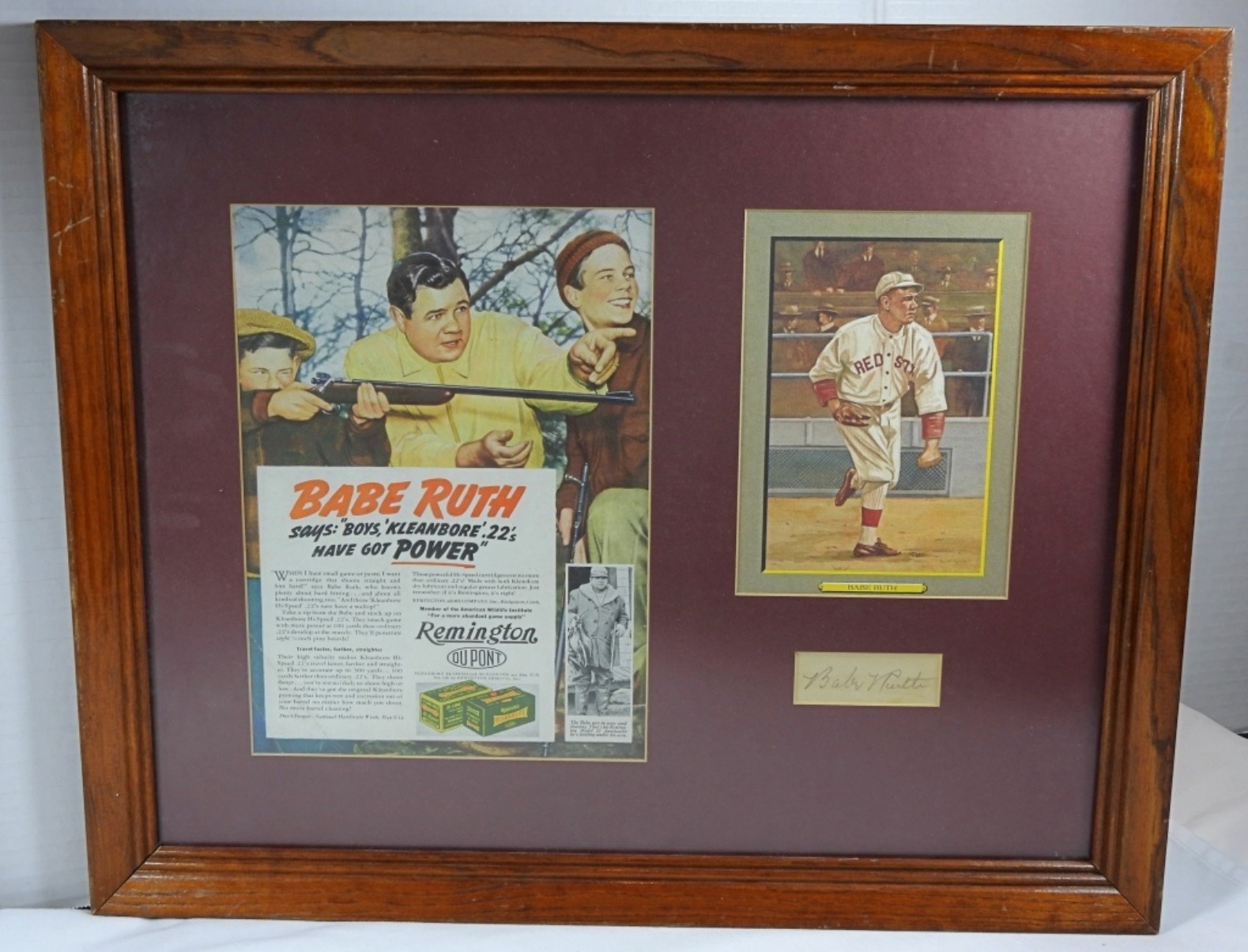 PRINTED CUT REPLICA SIGNATURE with PEREZ-STEEL GREAT MOMENT CARD & REMINGTON MAGAZINE AD in 22×18 FRAME – COLLECTOR ART PIECE