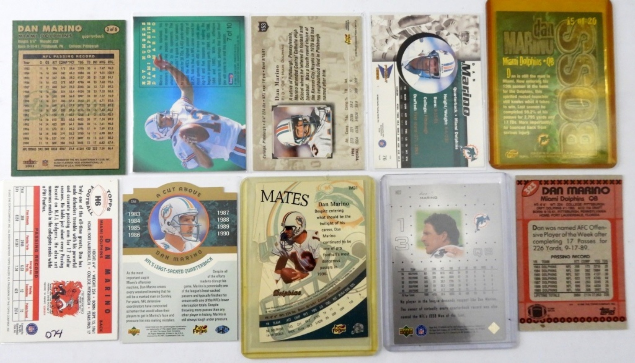 TEN DAN MARINO FOOTBALL CARDS. GREAT VARIETY!