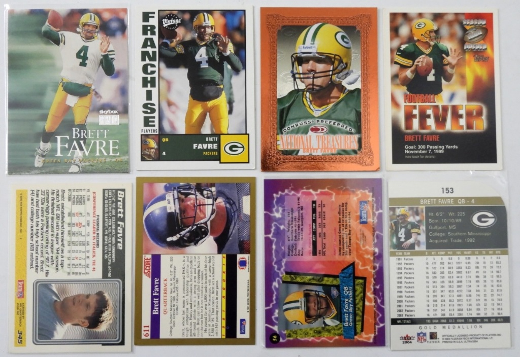 SIXTEEN BRETT FAVRE PREMIUM FOOTBALL CARDS. GREAT VARIETY!