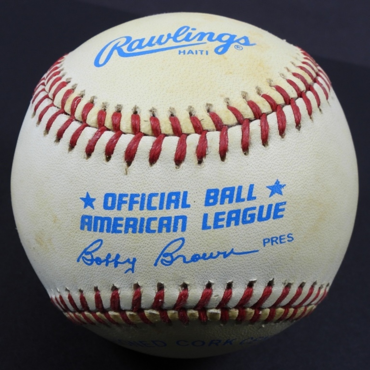 AUTOGRAPHED AMERICAN LEAGUE BASEBALL IN DISPLAY CASE – NO COA / UNVERIFIED
