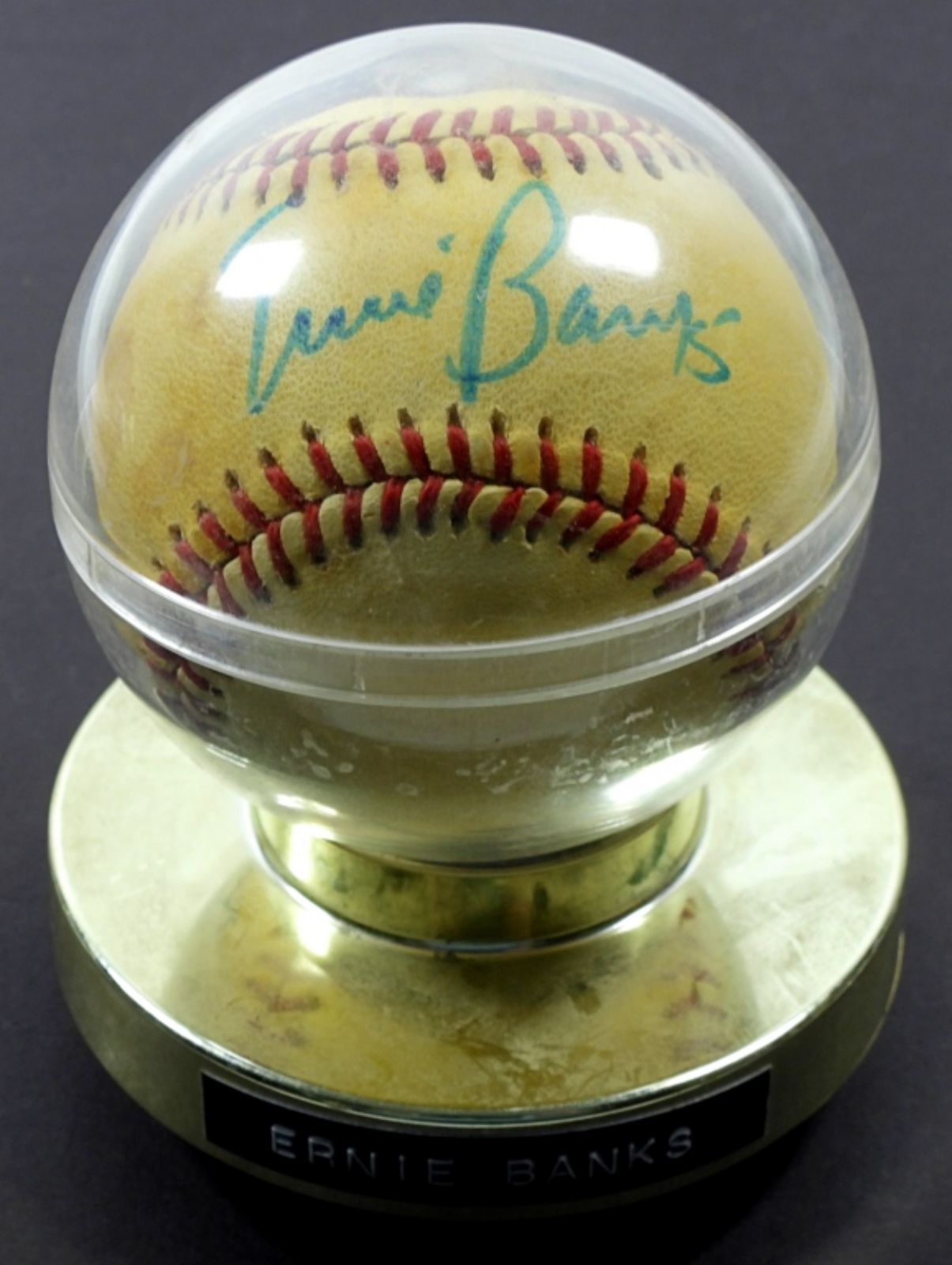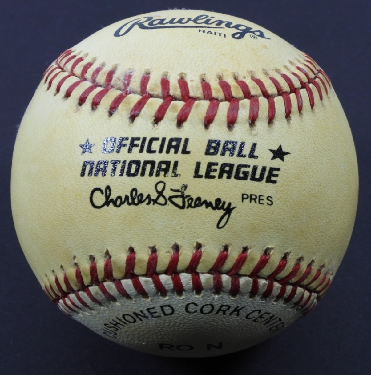 AUTOGRAPHED NATIONAL LEAGUE BASEBALL IN DISPLAY CASE – NO COA / UNVERIFIED
