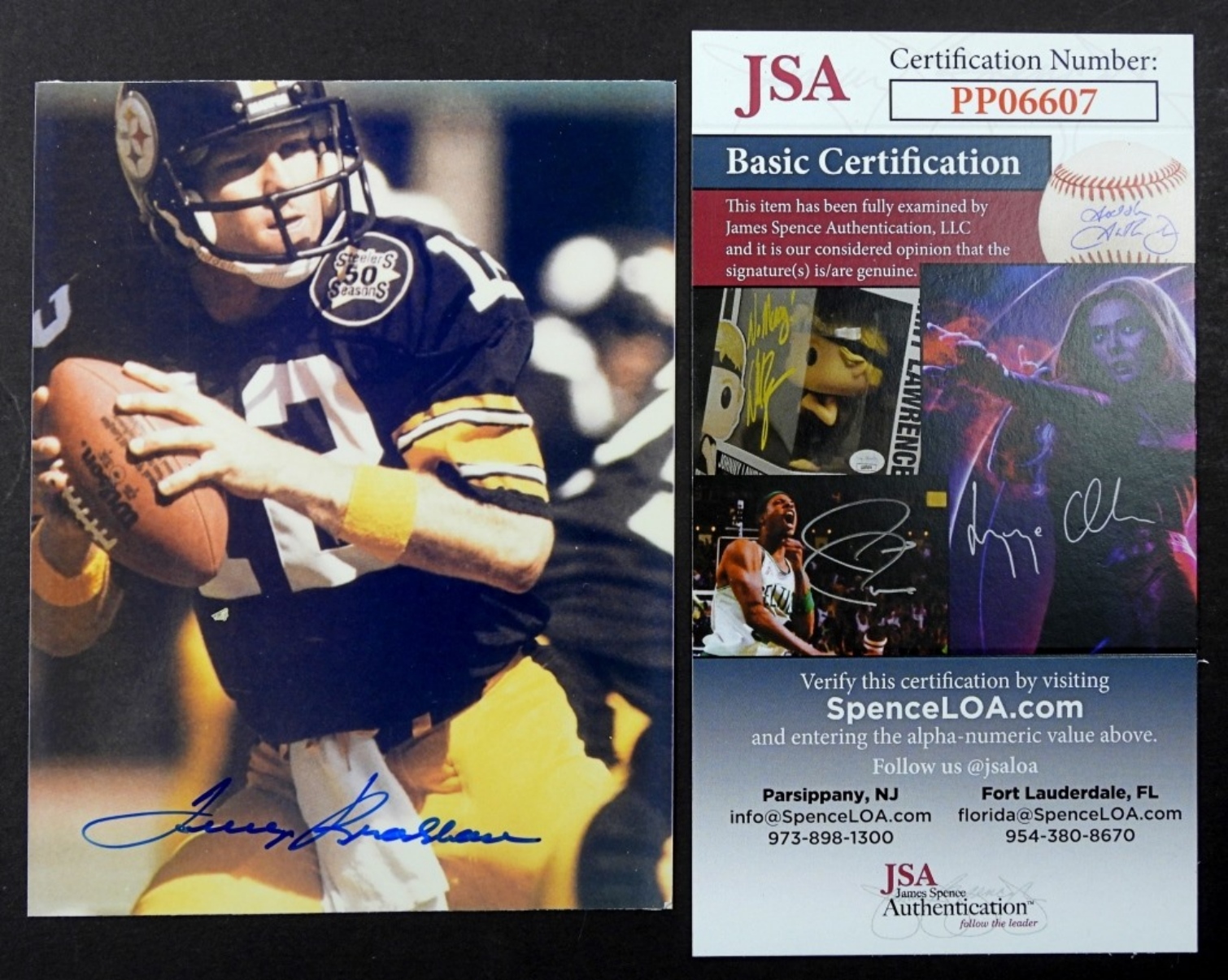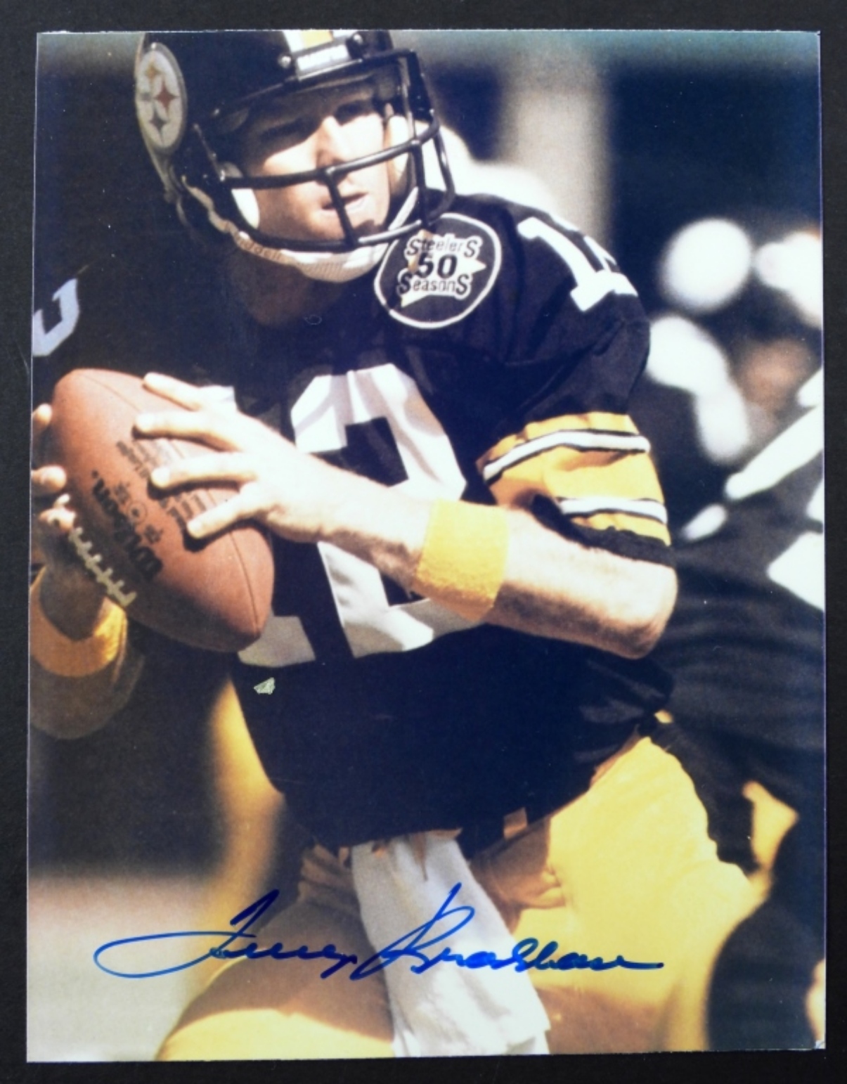 AUTOGRAPHED TERRY BRADSHAW PITTSBURGH STEELERS COLOR PHOTO with JSA CERT