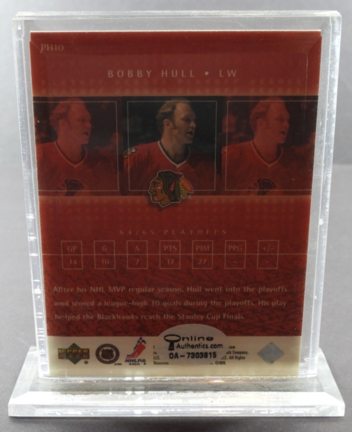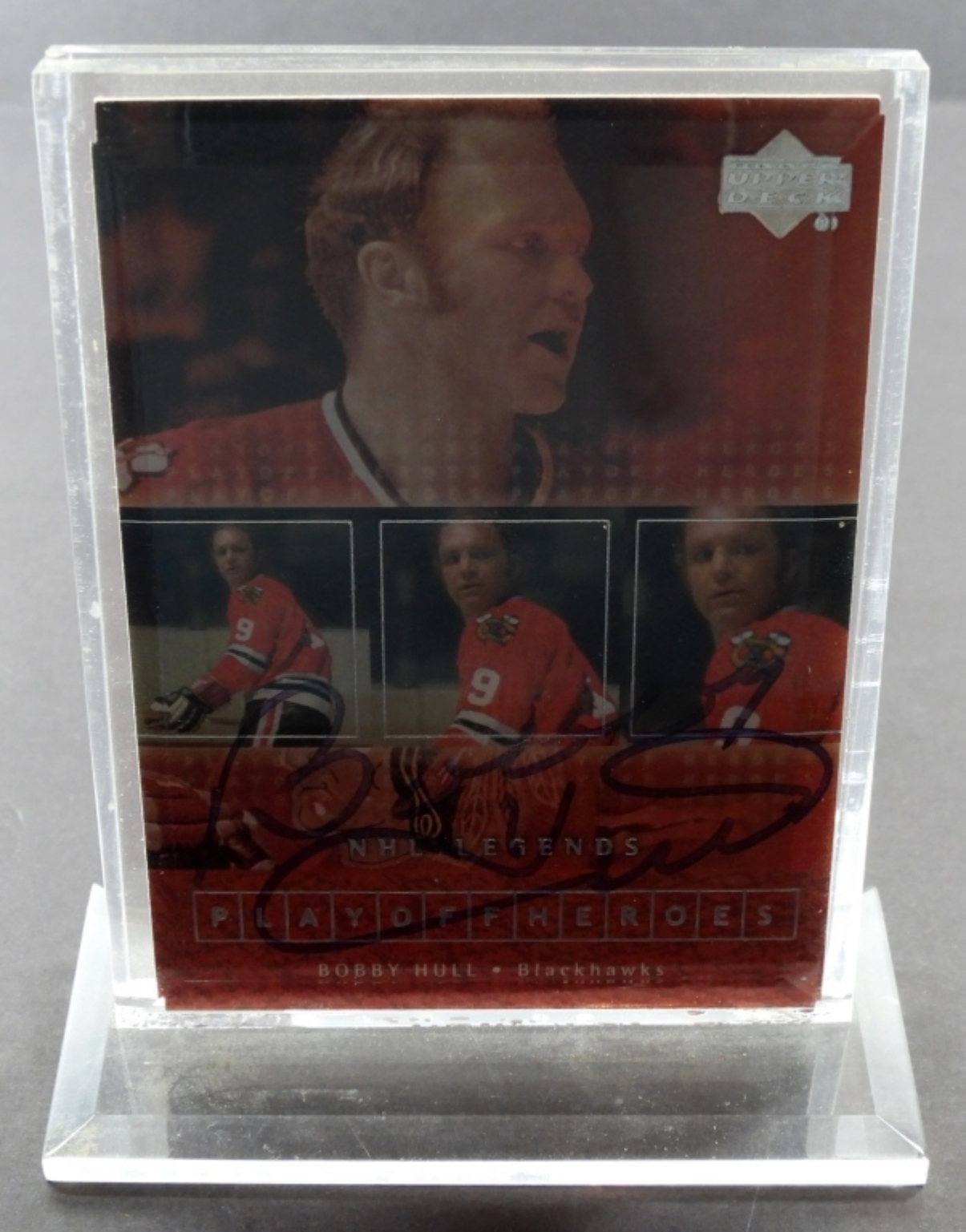 AUTOGRAPHED BOBBY HULL UPPER DECK NHL LEGENDS CARD IN CASE