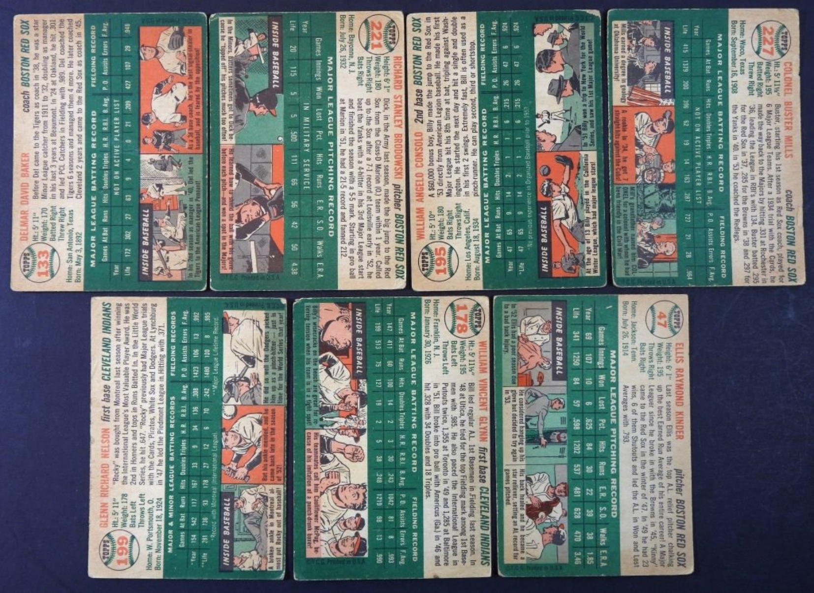 7-1954 TOPPS- CLEVELAND INDIANS & BOSTON RED SOX-VG/GOOD