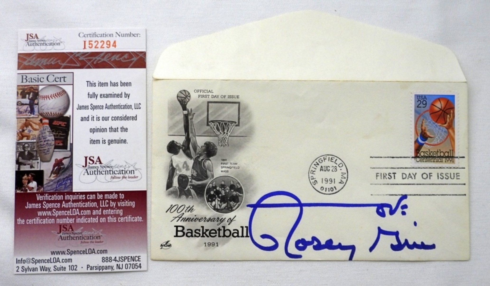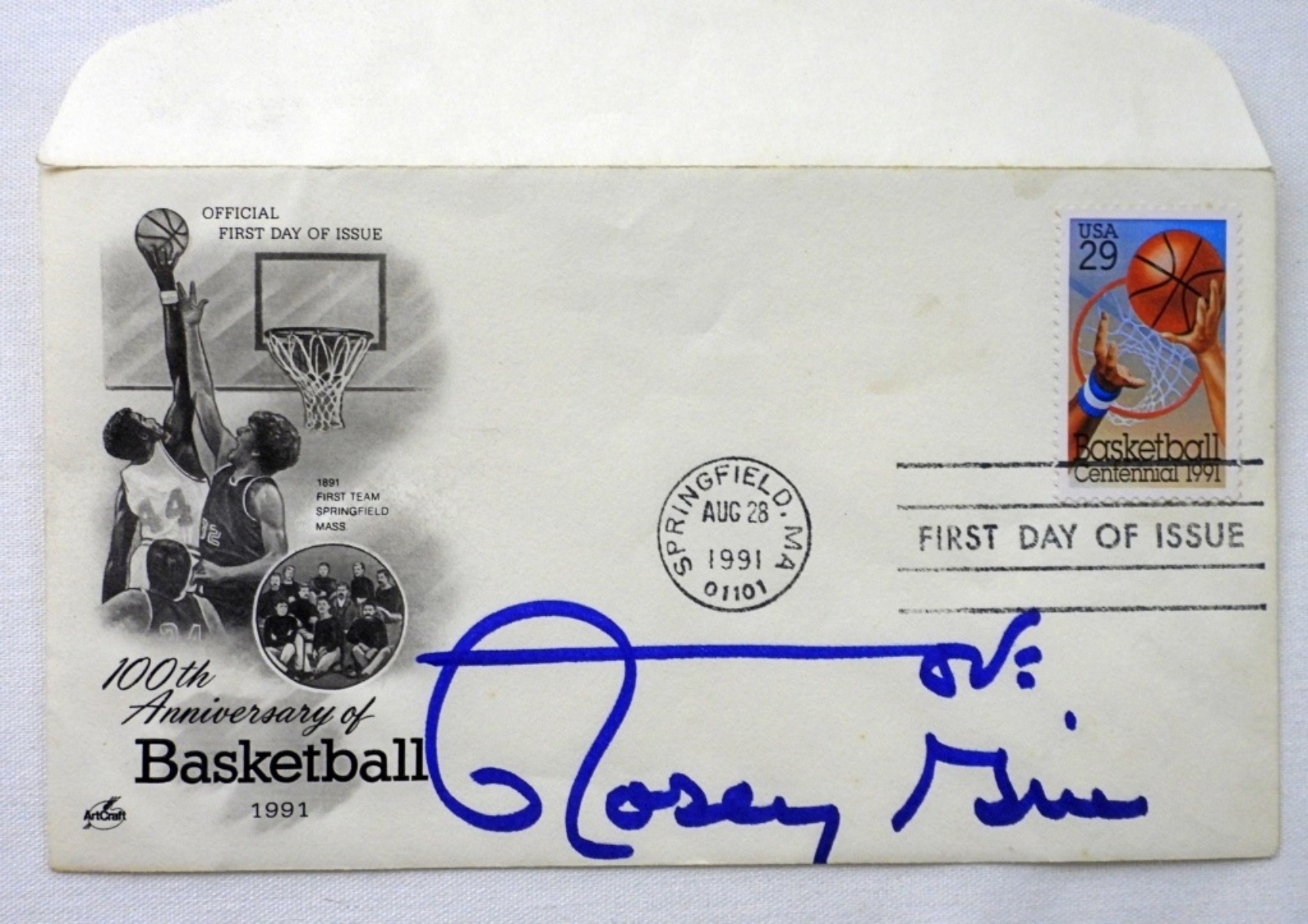SIGNED ROSEY GRIER 100TH ANNIVERSARY OF BASKETBALL 1991 ENVELOPE,WITH JSA.