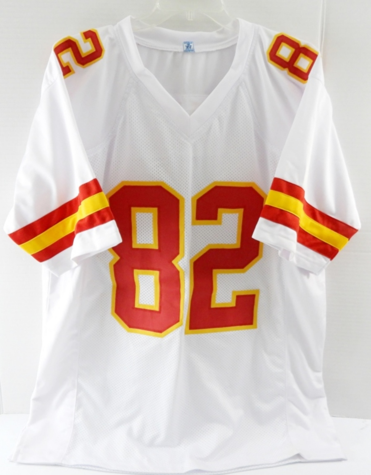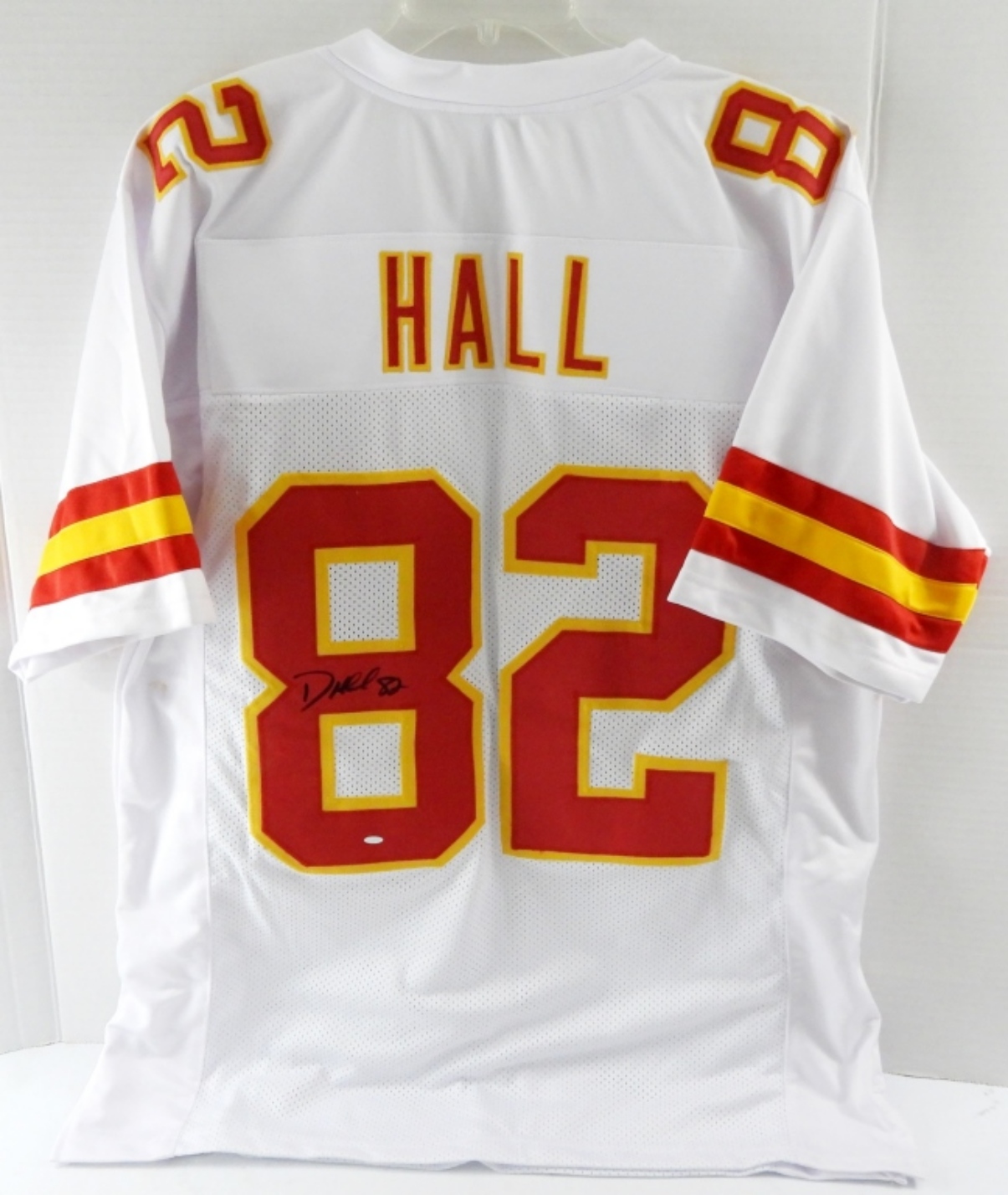 NFL KANSAS CITY CHIEFS, DANTE HALL #82 SIGNED JERSEY. SIZE MEN’S XL. NOT A NAME BRAND, HAS A FEW STAINS. NO COA!