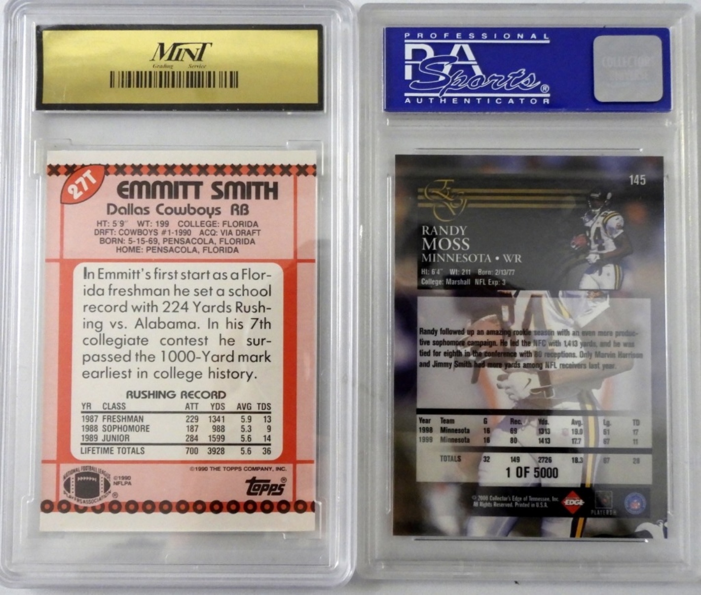 2000 COLL. EDGE RANDY MOSS PSA 9 & 1990 TOPPS TRADED EMMITT SMITH ROOKIE MINT 9