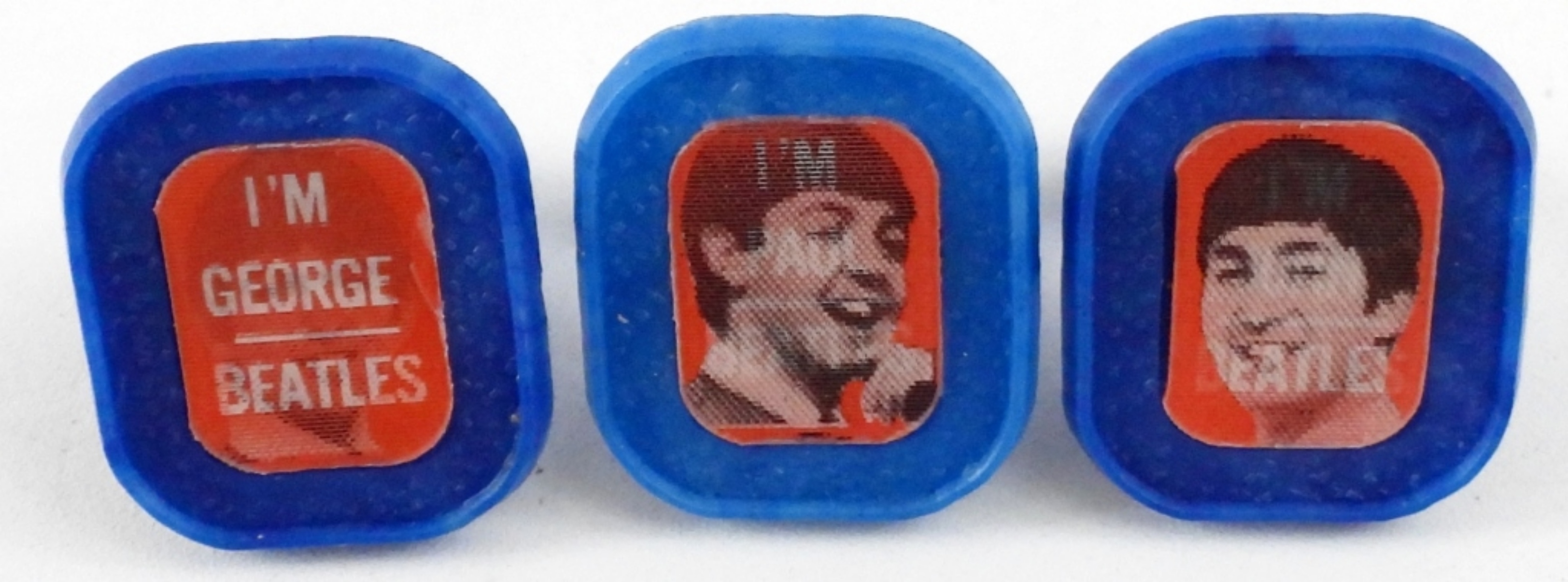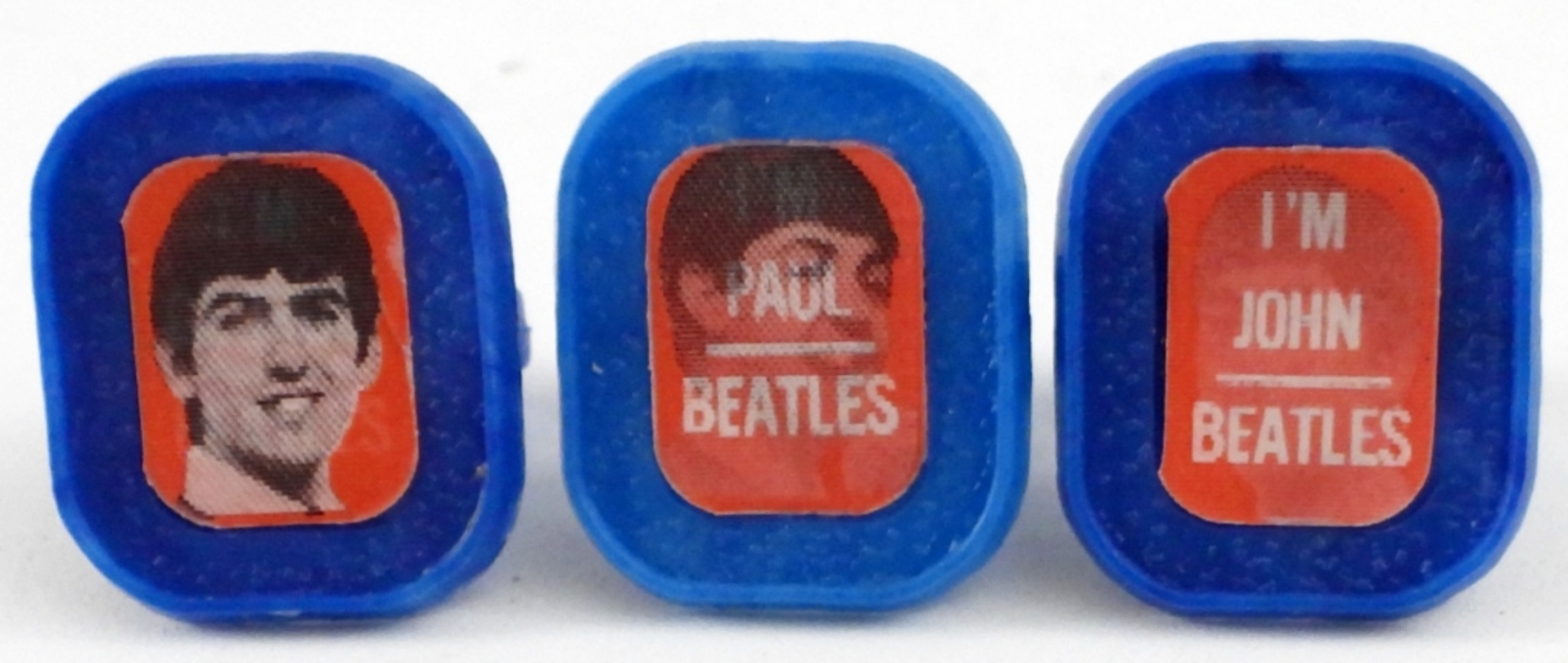 THREE BLUE FLASHER RINGS, THE BEATLES. JOHN, PAUL & GEORGE.