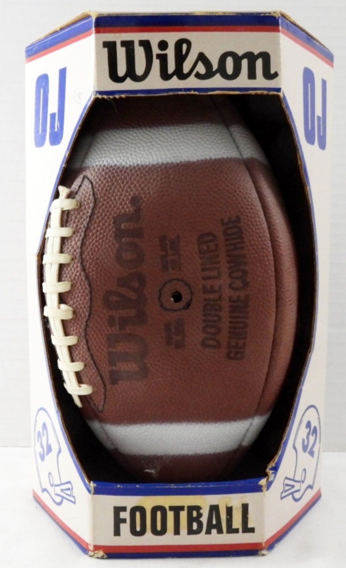 WILSON COWHIDE FOOTBALL with O J SIMPSON EMBOSSED on BALL in ORIGINAL BOX