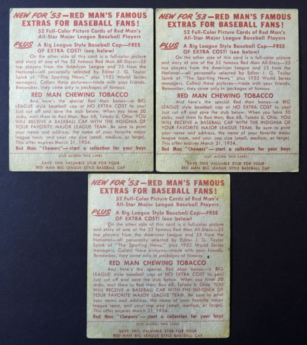 #7 EDDIE JOOST, #7 WHITEY LOCKMAN, #13 ENOS SLAUGHTER – (1) GOOD (2) VG – ALL with TABS