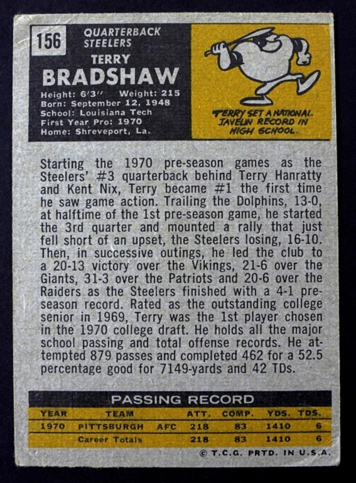 1971 TOPPS TERRY BRADSHAW ROOKIE #156