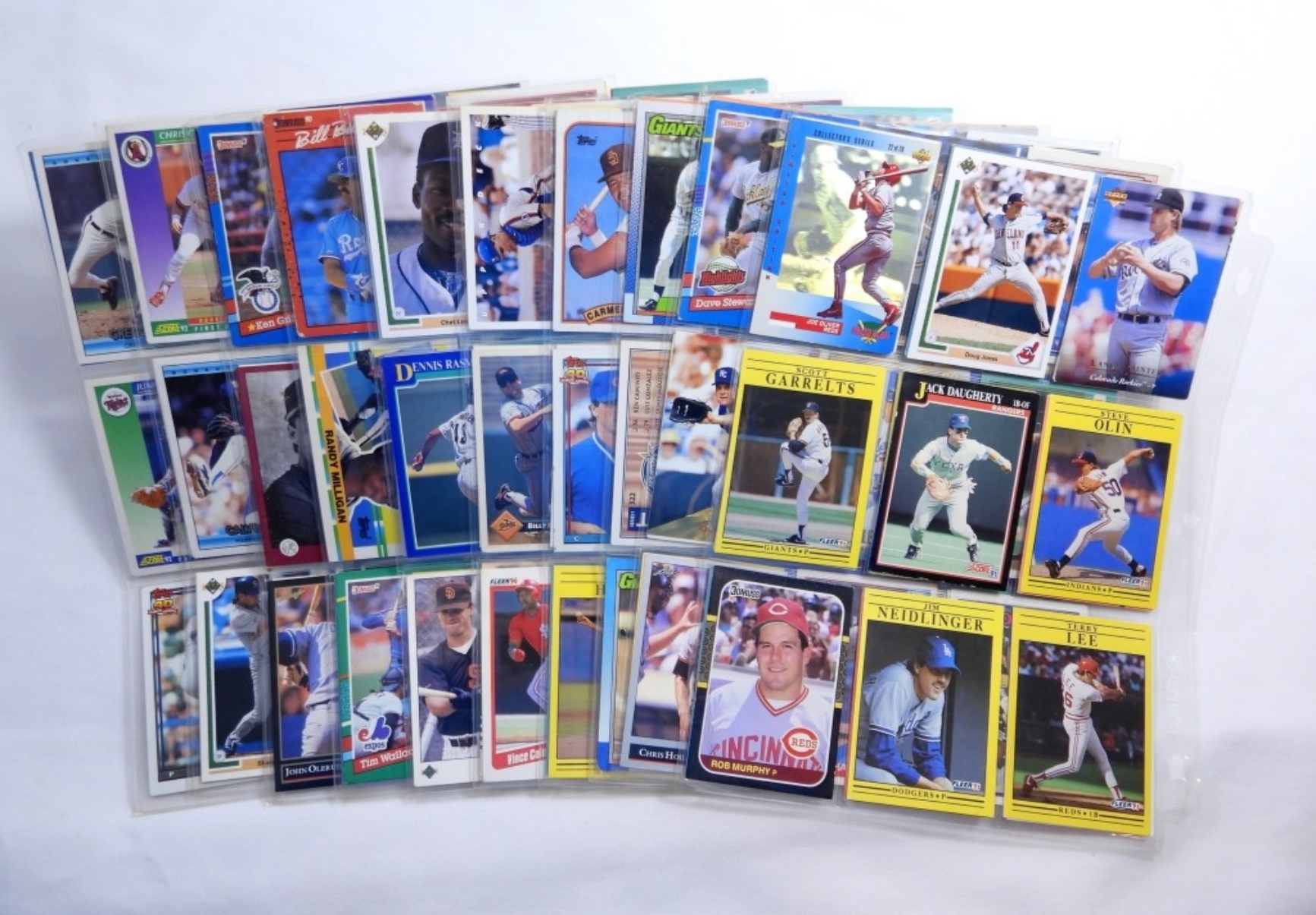 10 PAGES OF 18 ASSORTED BASEBALL CARDS (180 TOTAL)