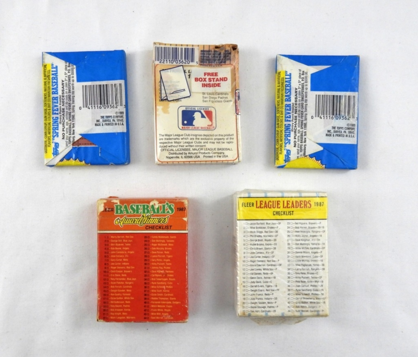 2- 1989 TOPPS MAJOR LEAGUE BASEBALL CARDS 15 CARDS PER WAX PACK ( ONE OF THE BACKS DOES HAVE AN OPENING ON THE BACK, NOT COMPLETE OPEN OTHER SIDE IS SEALED), 1990 MAJOR LEAGUES BASEBALL CARDS- METS – 30 CARDS (DOES