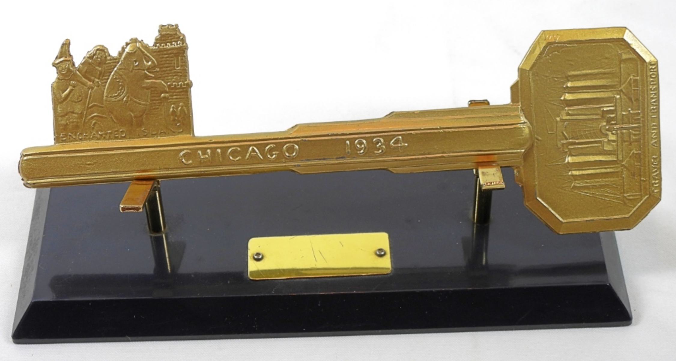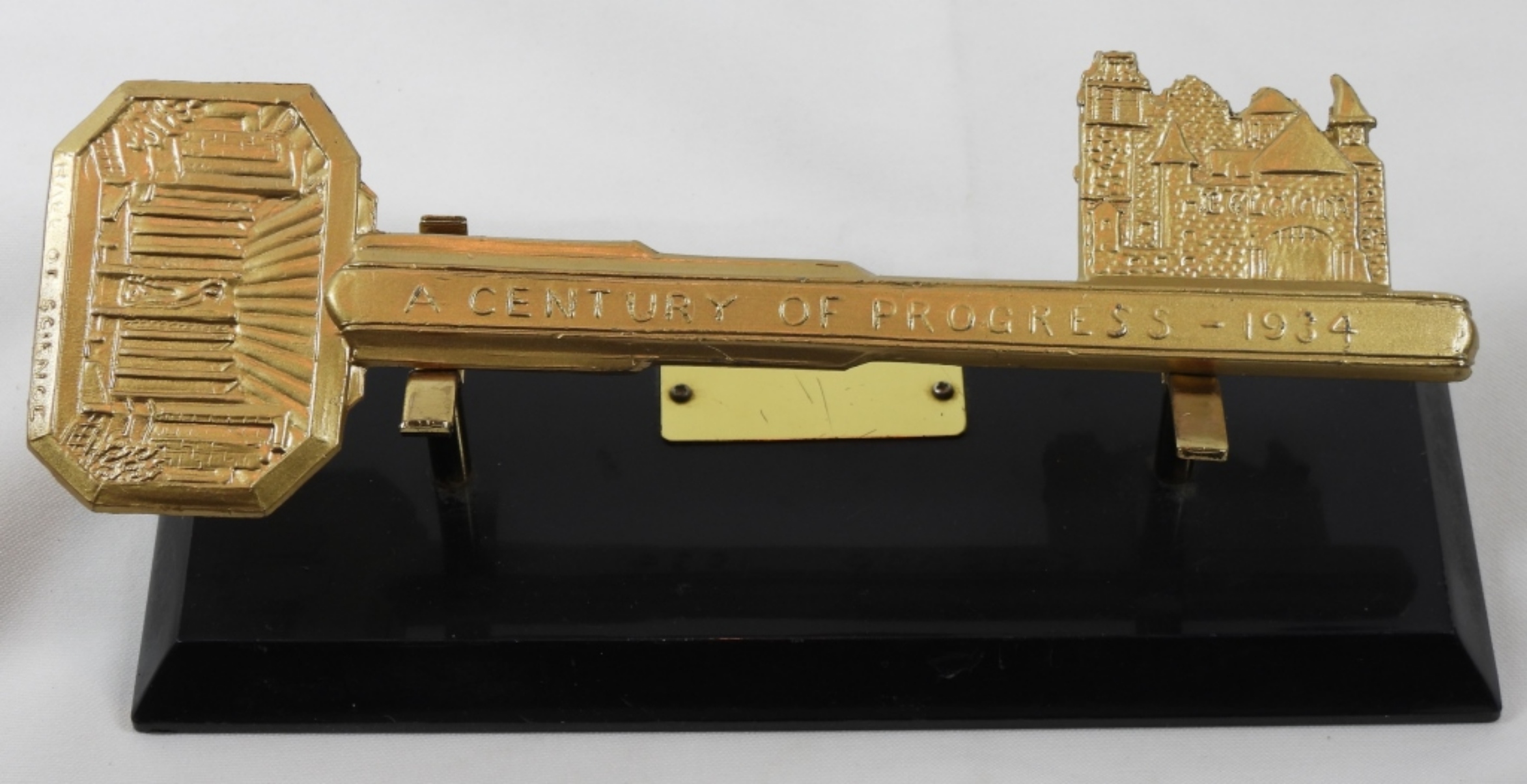 LARGE GOLD PAINTED METAL SOUVENIER KEY FROM THE 1934 CHICAGO WORLD’S FAIR