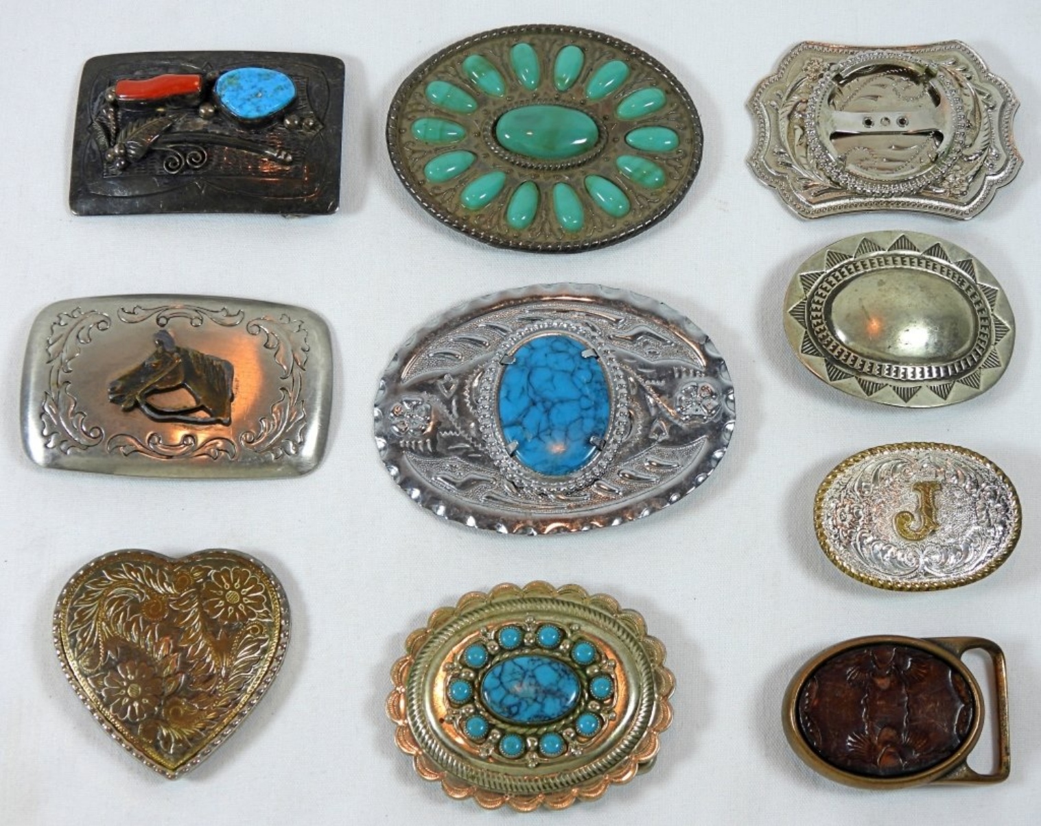 (10) VARIETY COLORFUL WESTERN STYLE BELT BUCKLES WITH GEMS AND PATTERNS