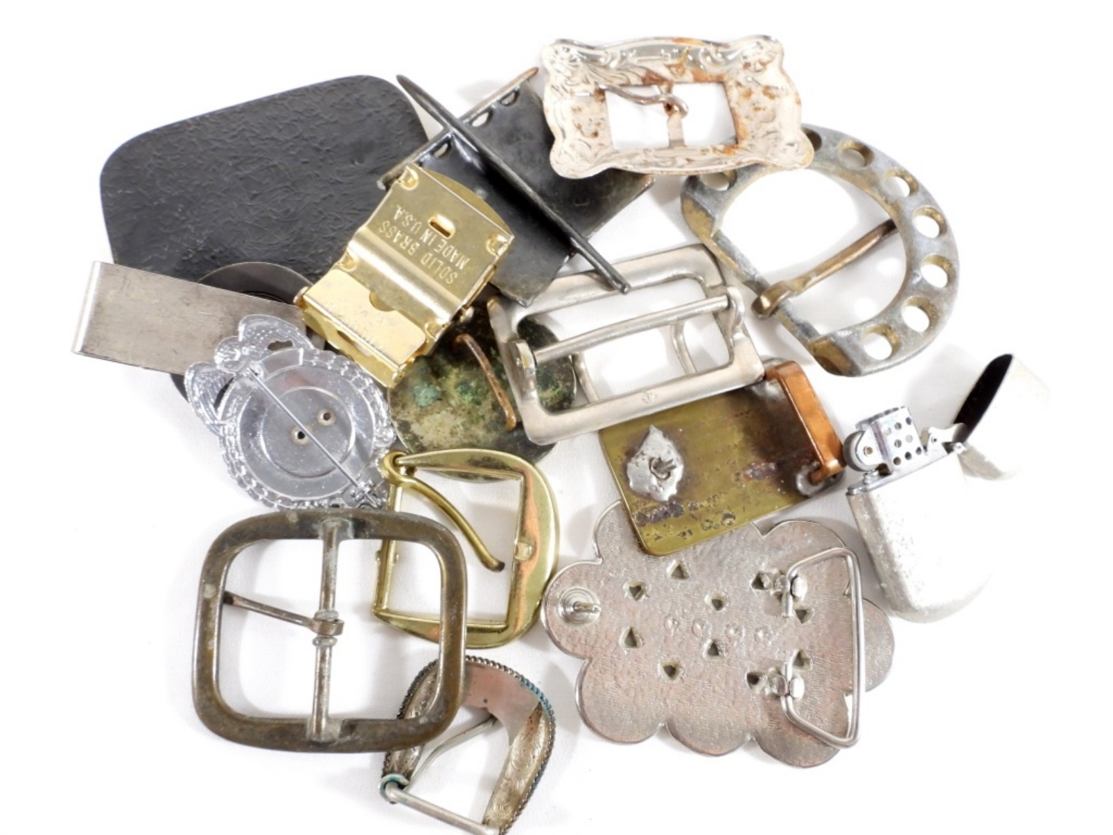 VARIETY BELT BUCKLES, PINS, LIGHTER