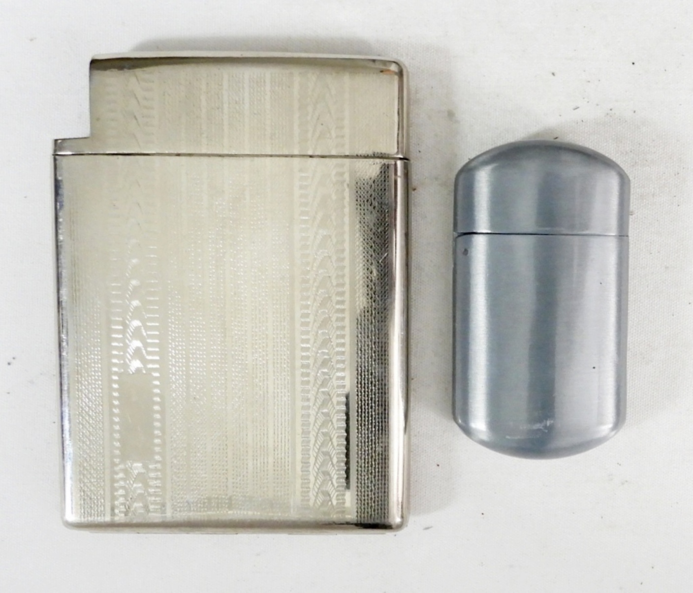 (1)JAPAN CIG HOLDER & (1) PORT. ASHTRAY, MADE IN OCCUPIED JAPAN CIGARETTE HOLDER SILVERTONE LIGHTER MISSING, PORTABLE ASHTRAY BRUSHED SILVERTONE