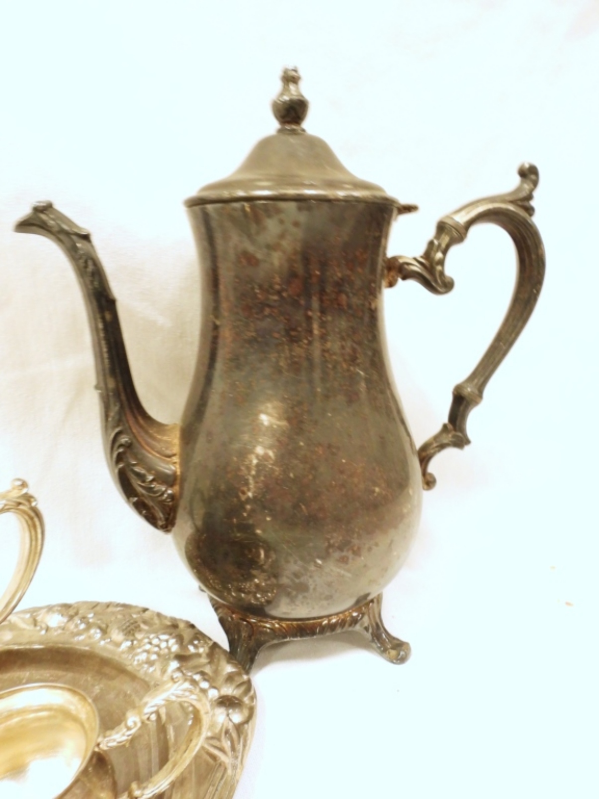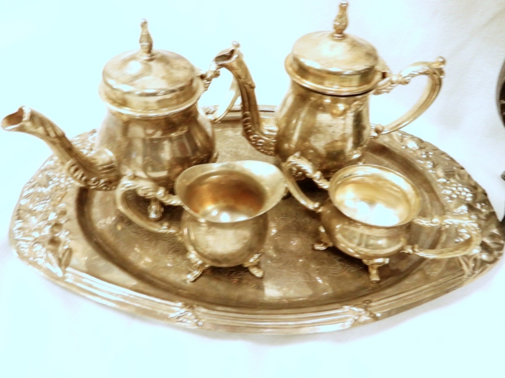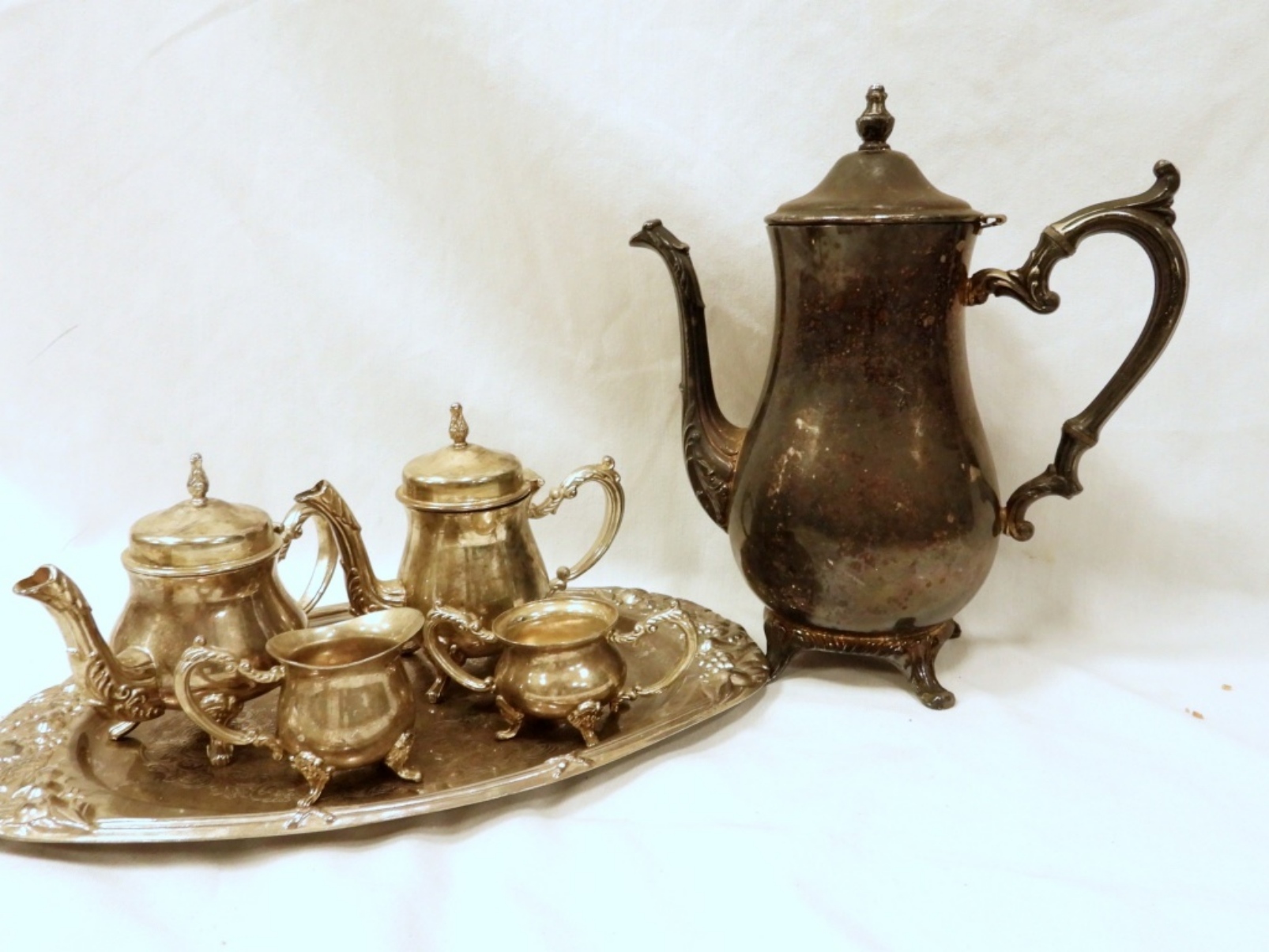 NOT STERLING – TRAY MEASURES 13″ LONG – PITCHER NEEDS SHINED UP!