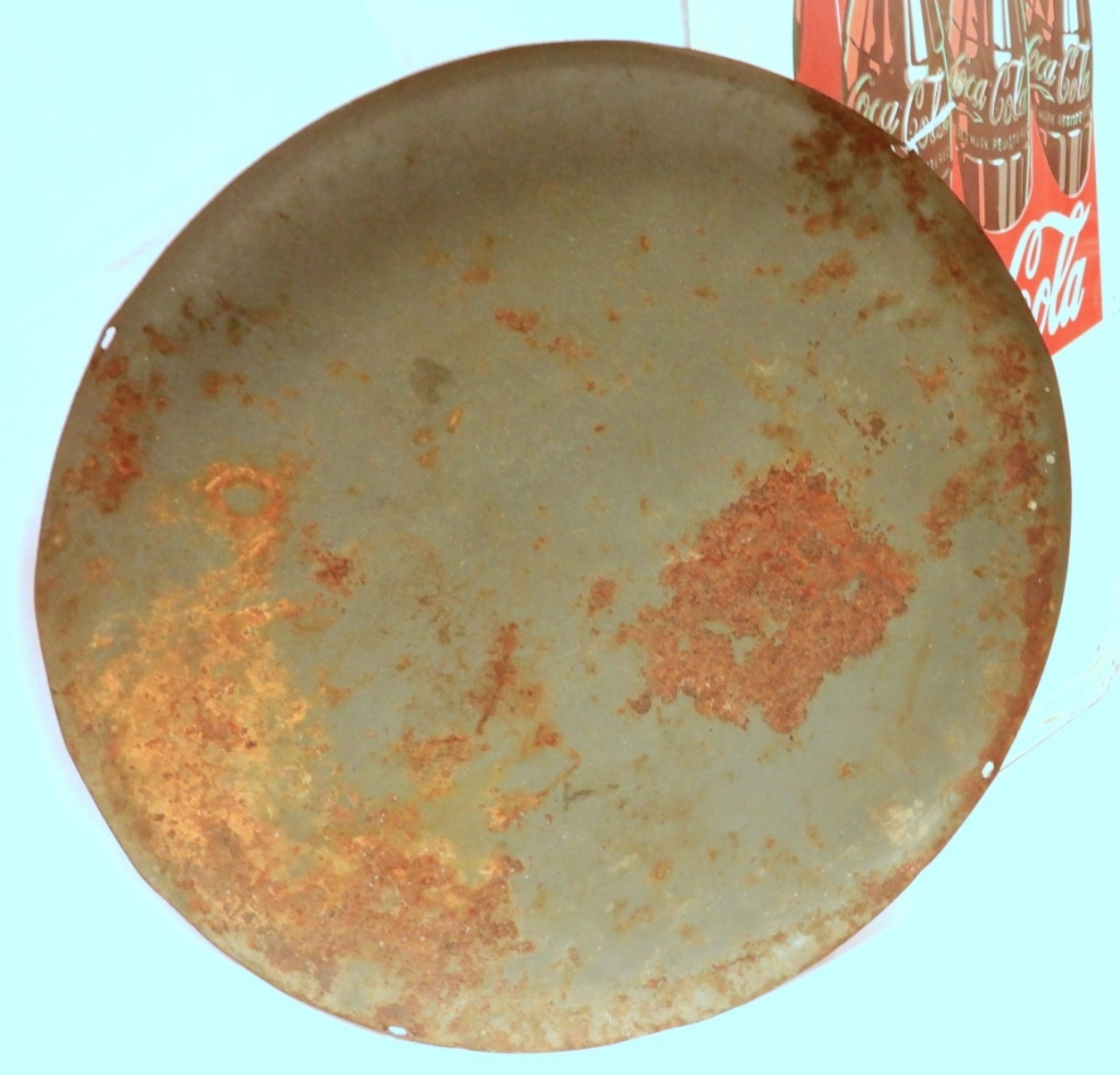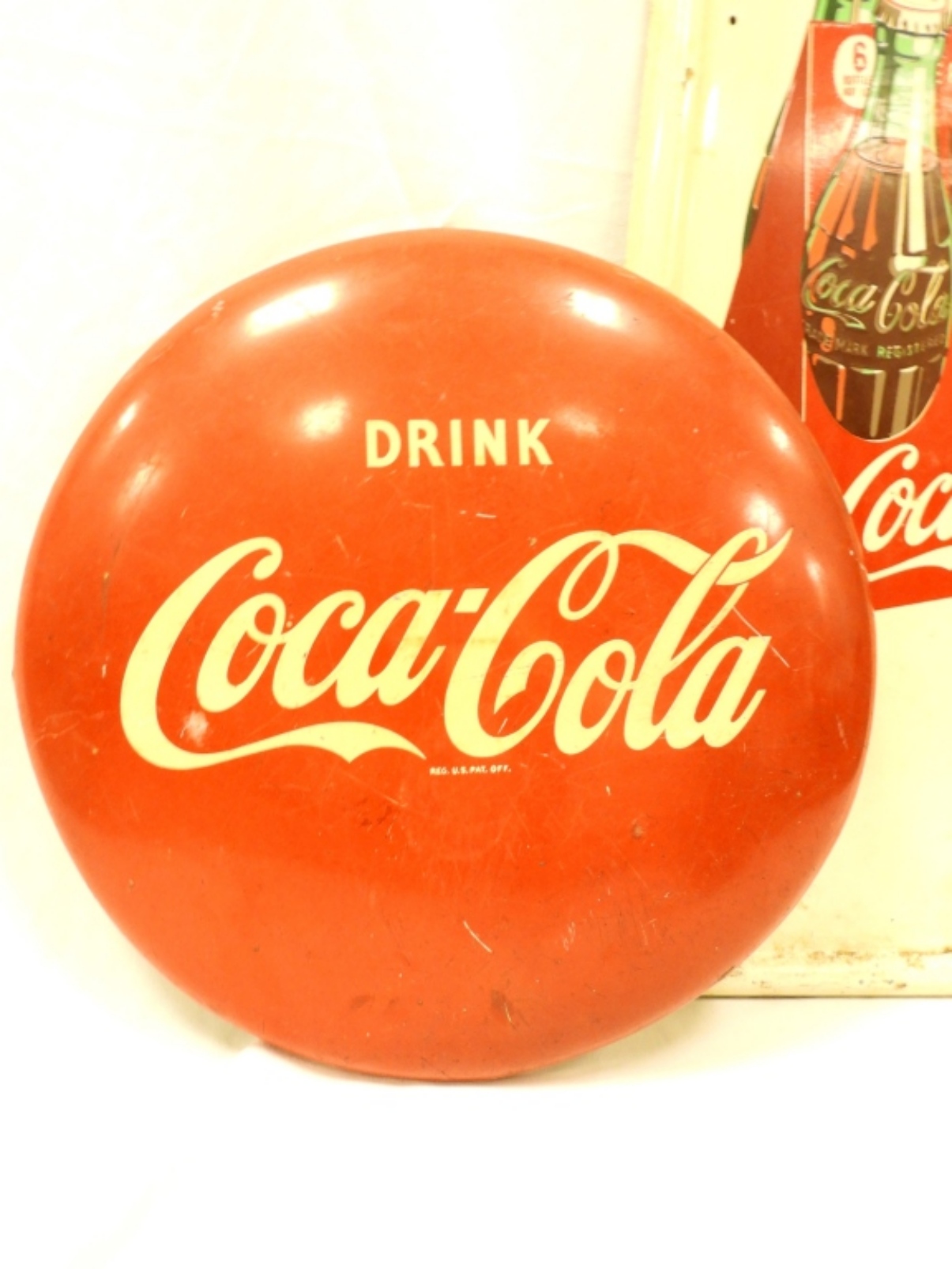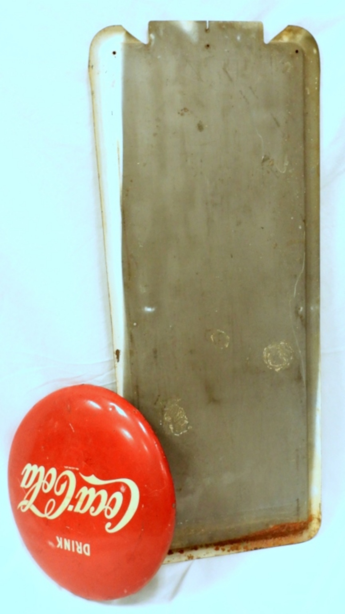 WITH BUTTON TOP! SIGN 41″ x 16 1/2″ – HEAVY METAL with ENAMEL COATING