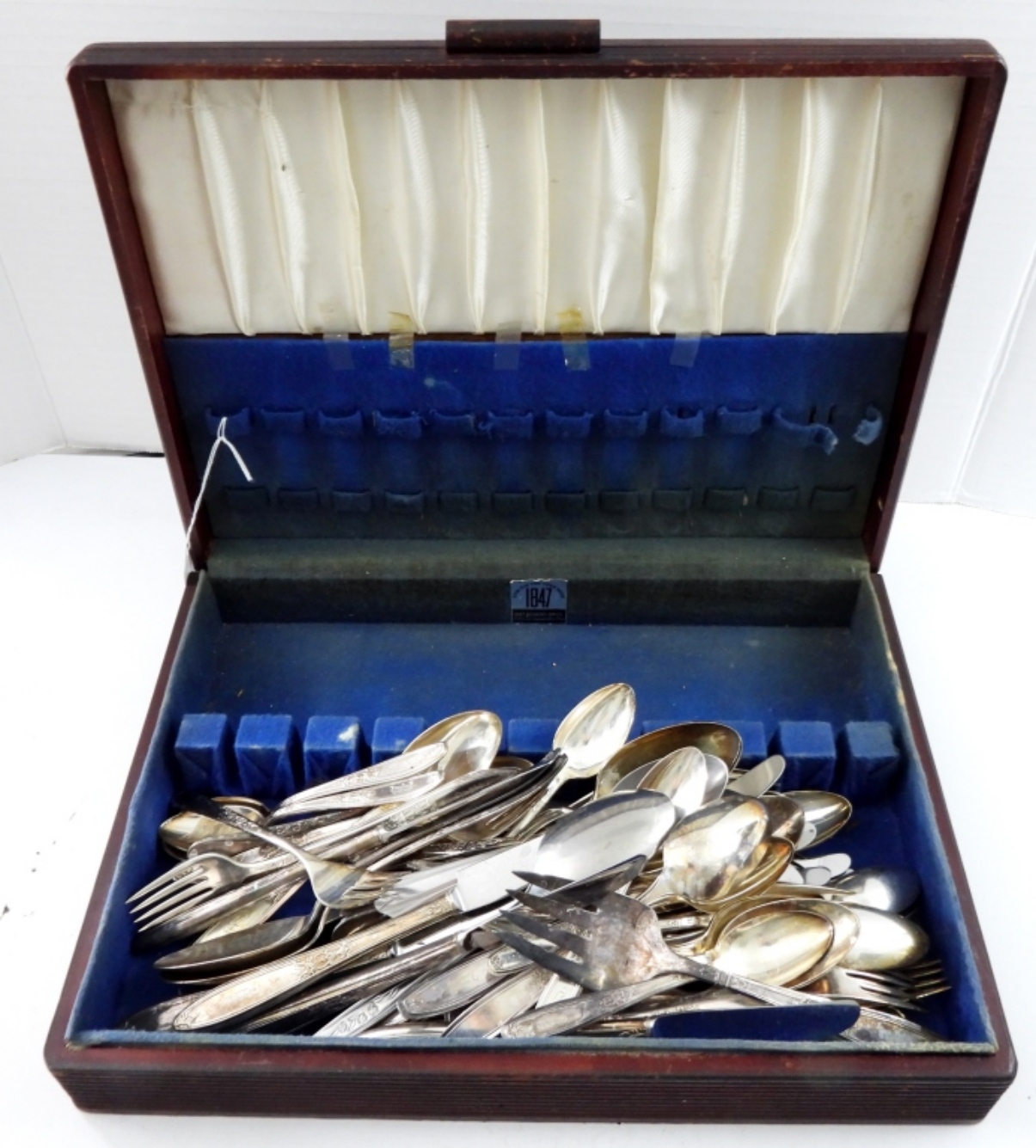 with WOOD BOX – SILVER PLATED / MIXED SET / LOOKS TO BE ALL SAME PATTERN