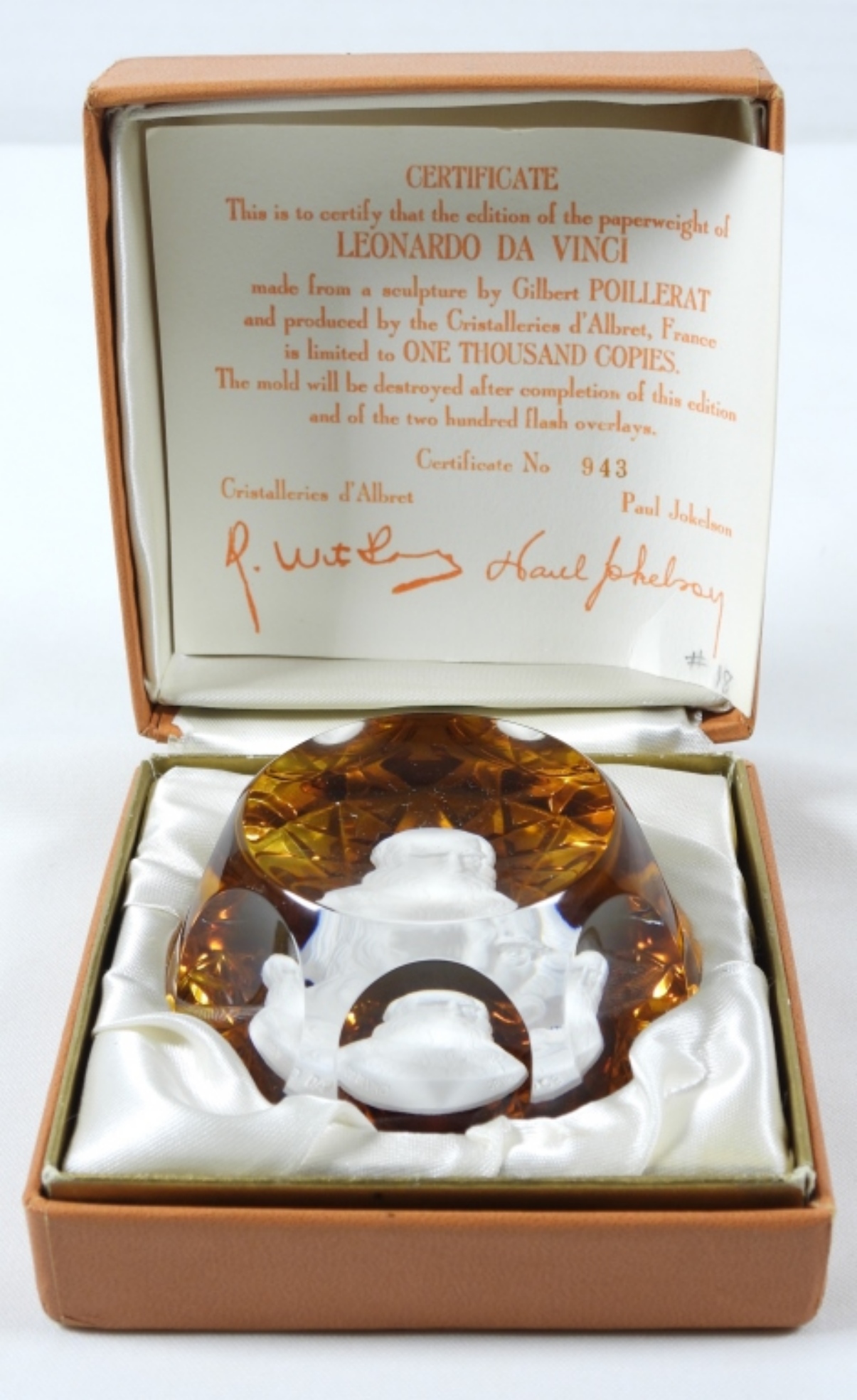 IN ORIGINAL BOX WITH NORMAL WEAR, CERTIFICATE NO 943, ONE THOUSAND COPIES MADE, HAS MARKERS MARKING, MADE IN FRANCE
