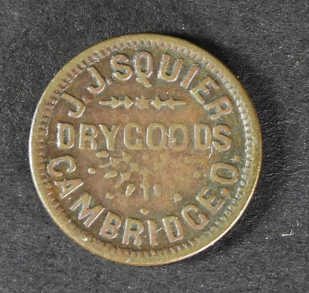 1863 J.J SQUIRE DRY GOODS ,CAMBRIDGE, O. CIVIL WAR TOKEN