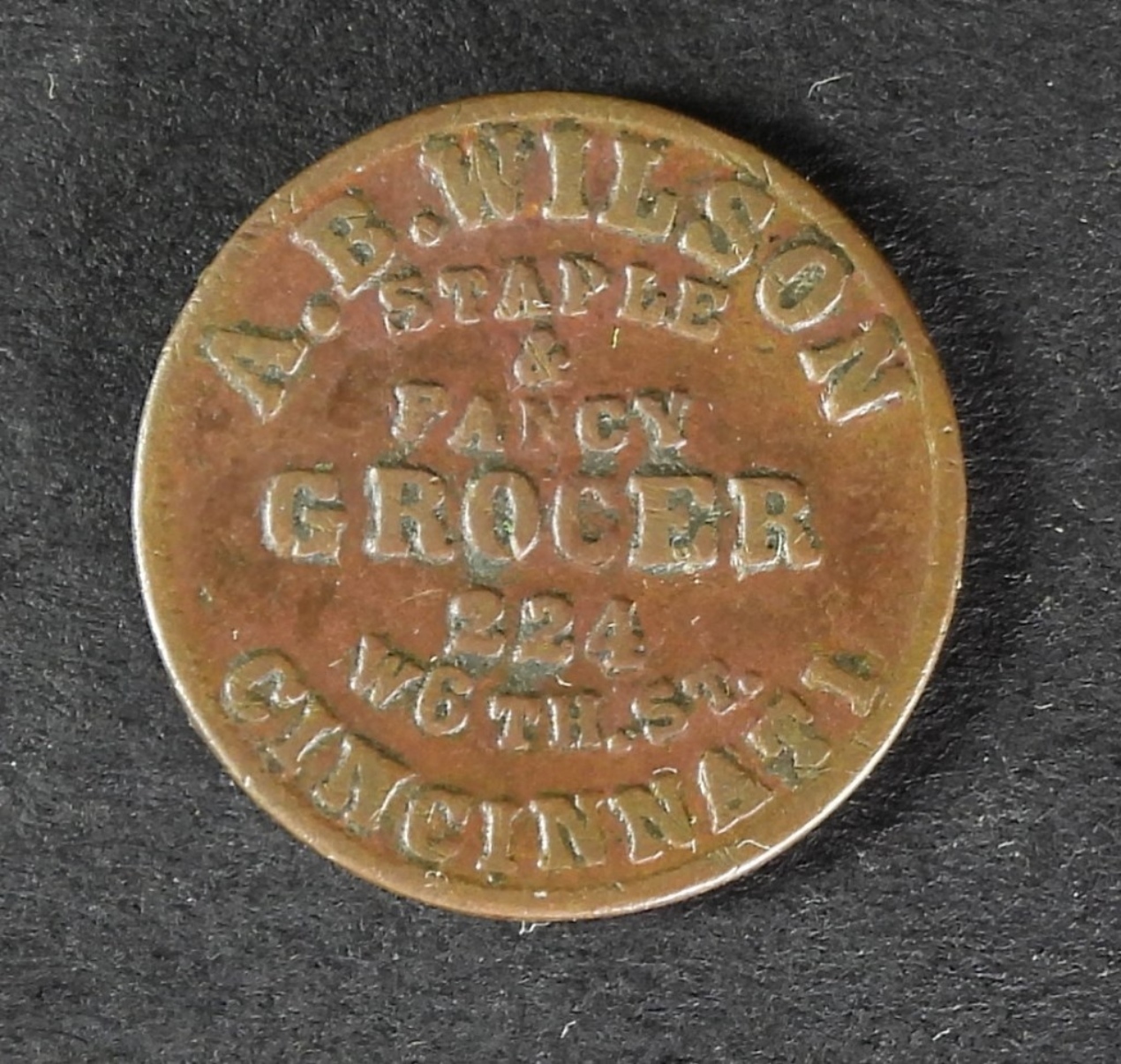 1862 A.B. WILSON STAPLE AND FANCY GROCER ,CINCINNATI, CIVIL WAR TOKEN