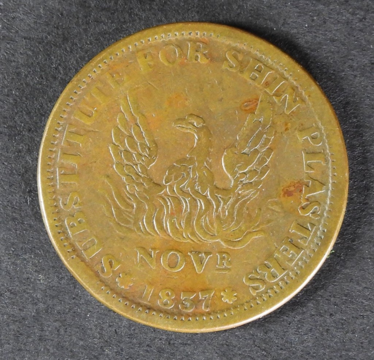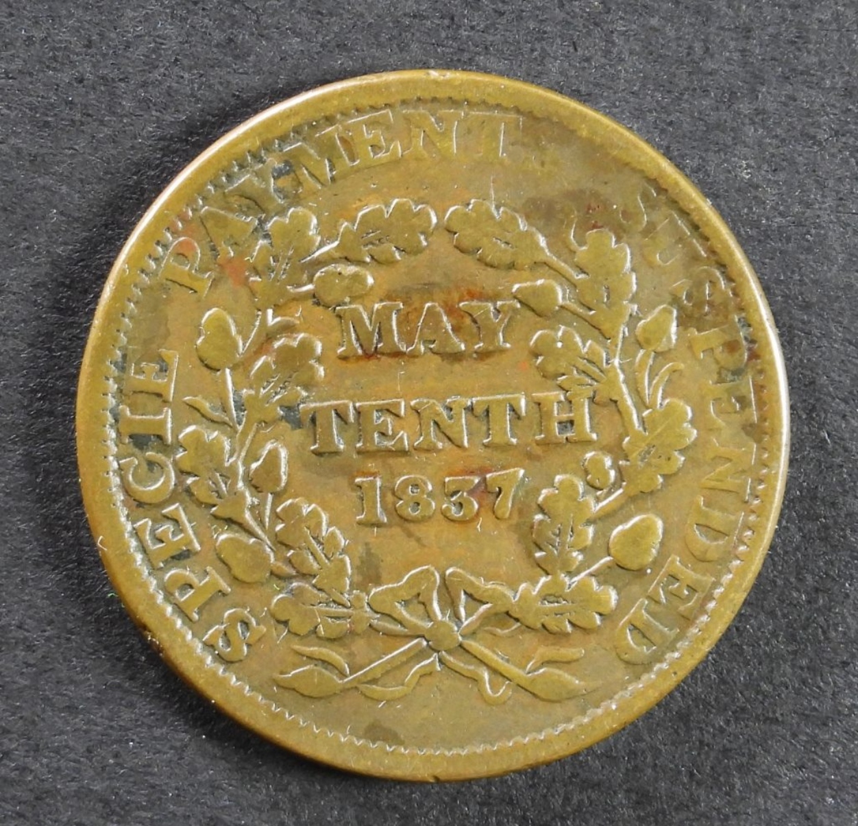 1837 SUBSTITUTE FOR SHIN PLASTERS, SPECIE PAYMENT SUSPENDED MAY TENTH ,HARD TIMES TOKEN