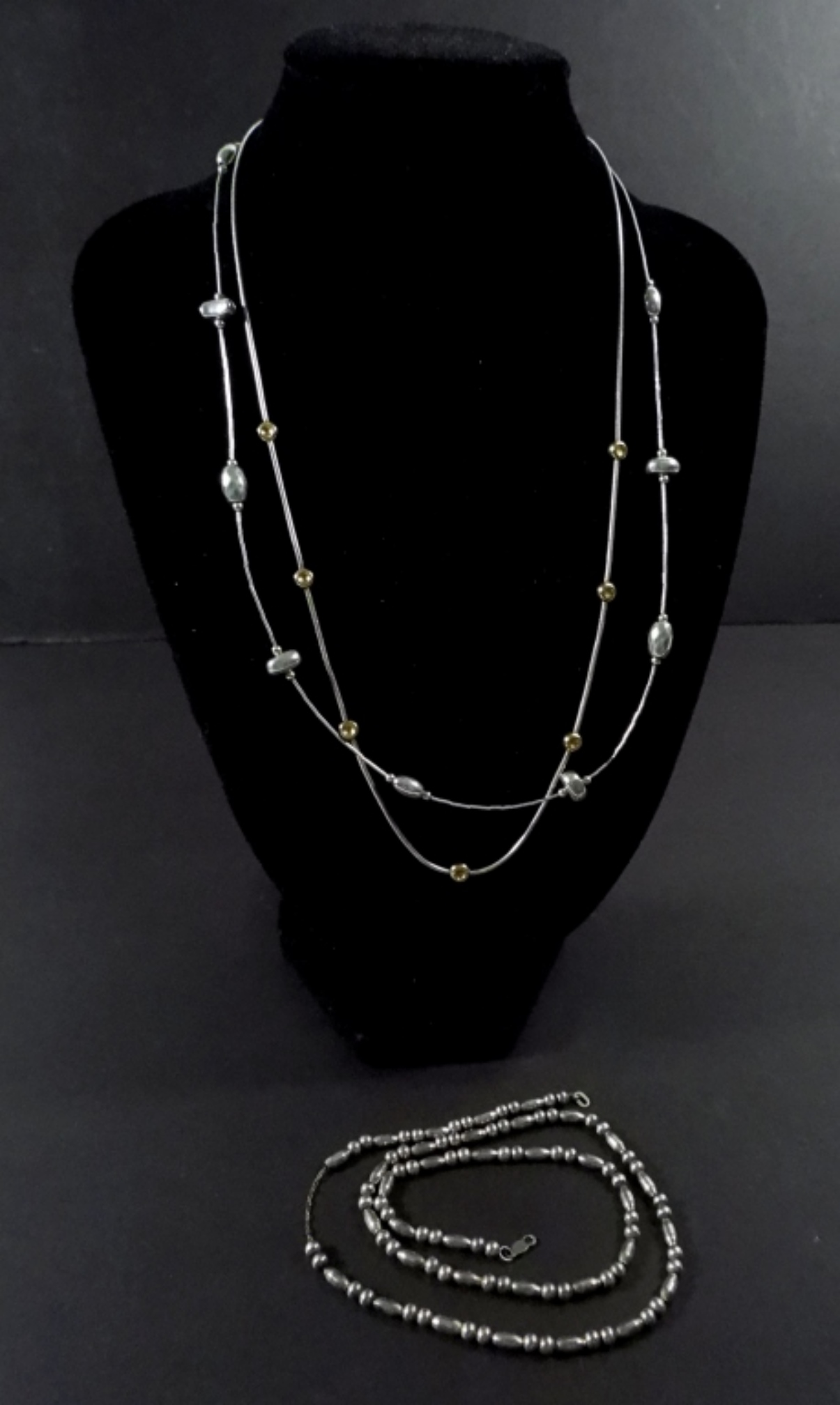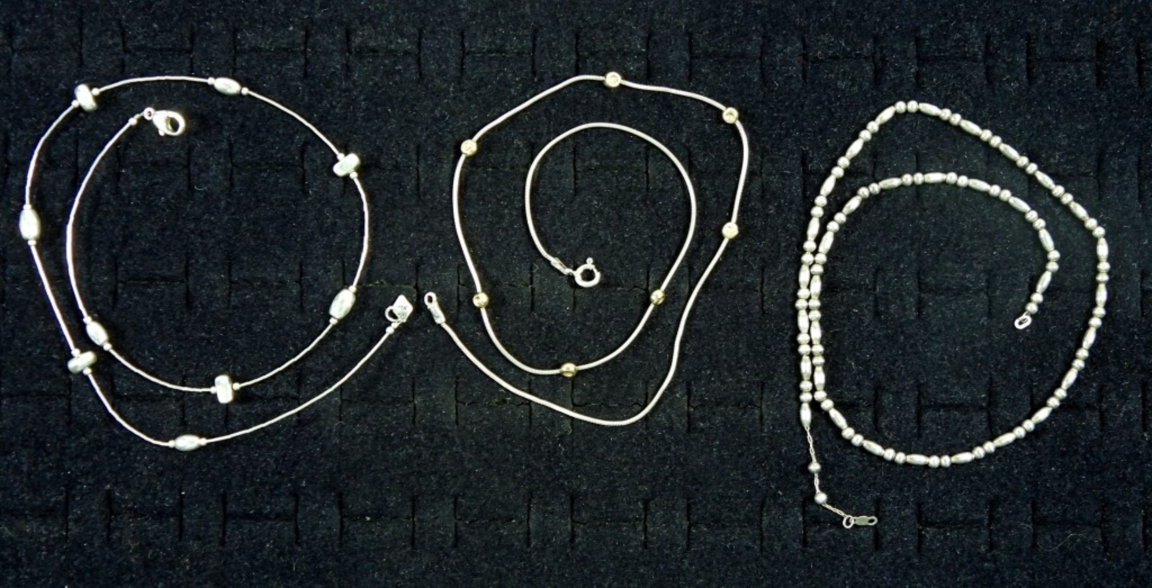 (3) VARIETY NECKLACES LENGTHS 16”, 16.5”, AND 17”,CLASP MISSING ON ONE NECKLACE DWT (12)