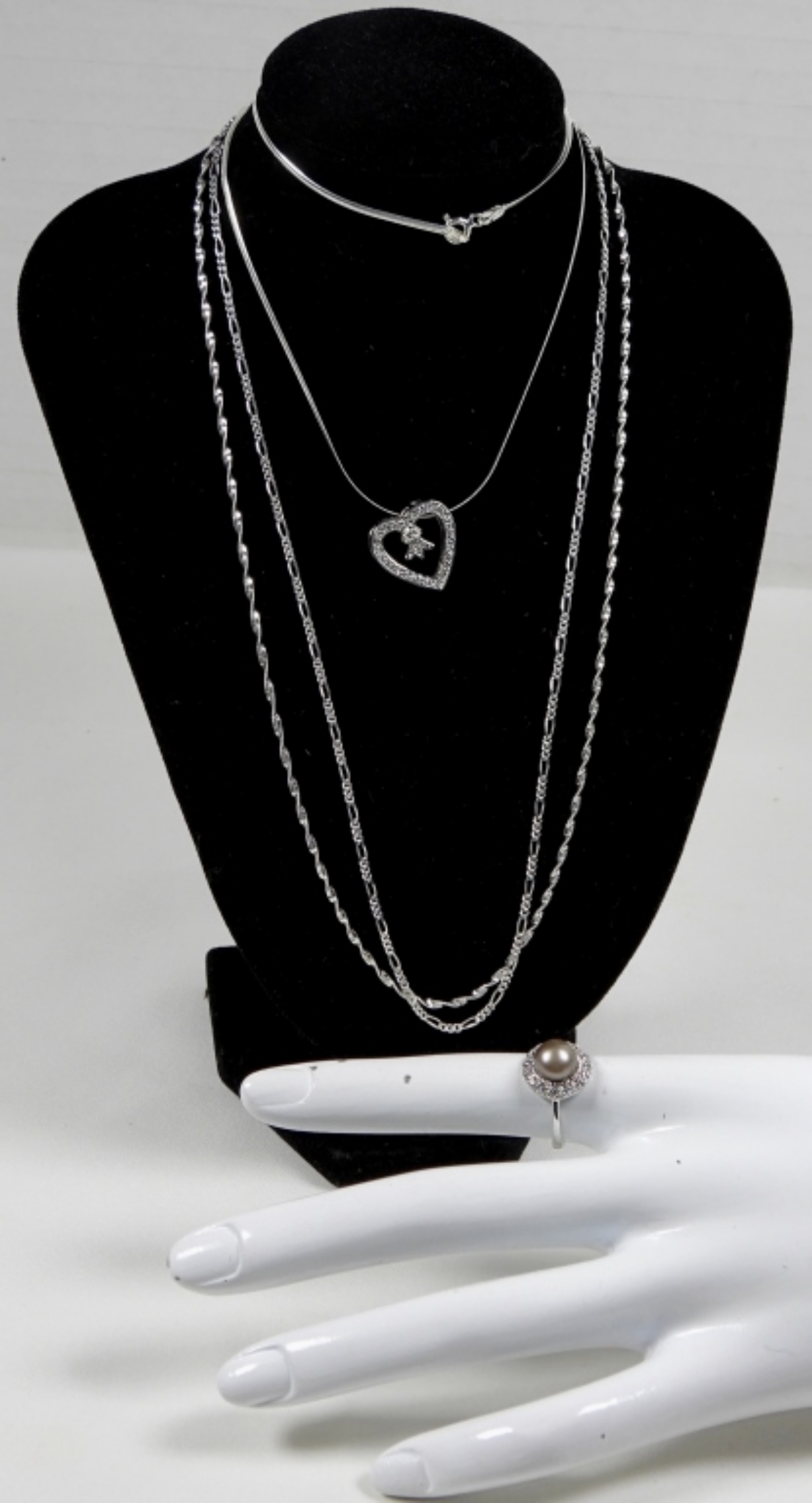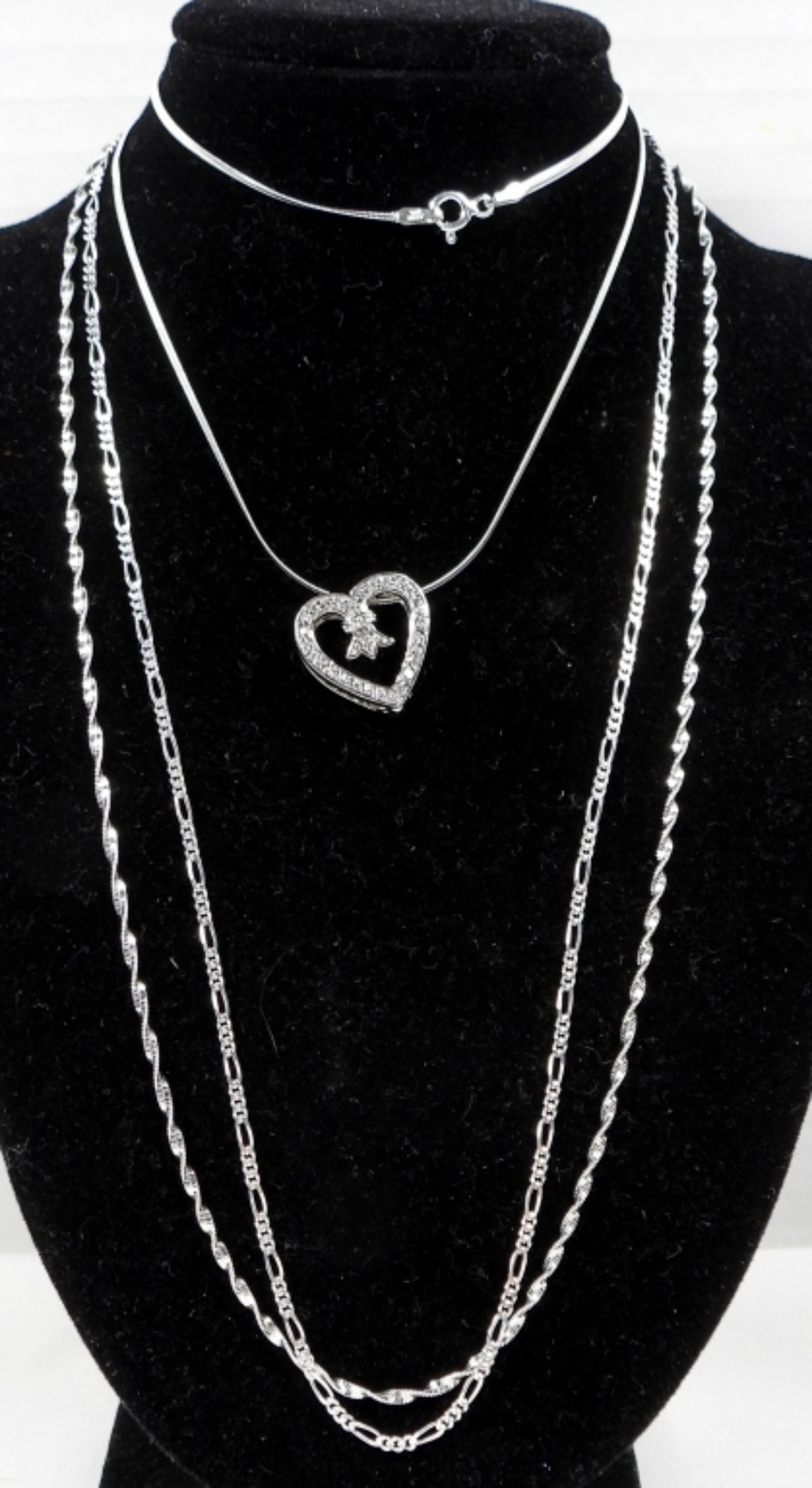 (3) 17” STERLING SILVER NECKLACES AND 1 CLEAR GEM SIZE 6 RING DWT (10.1)