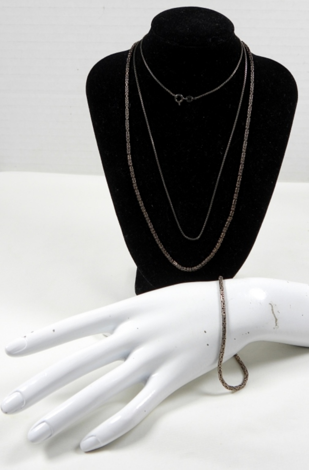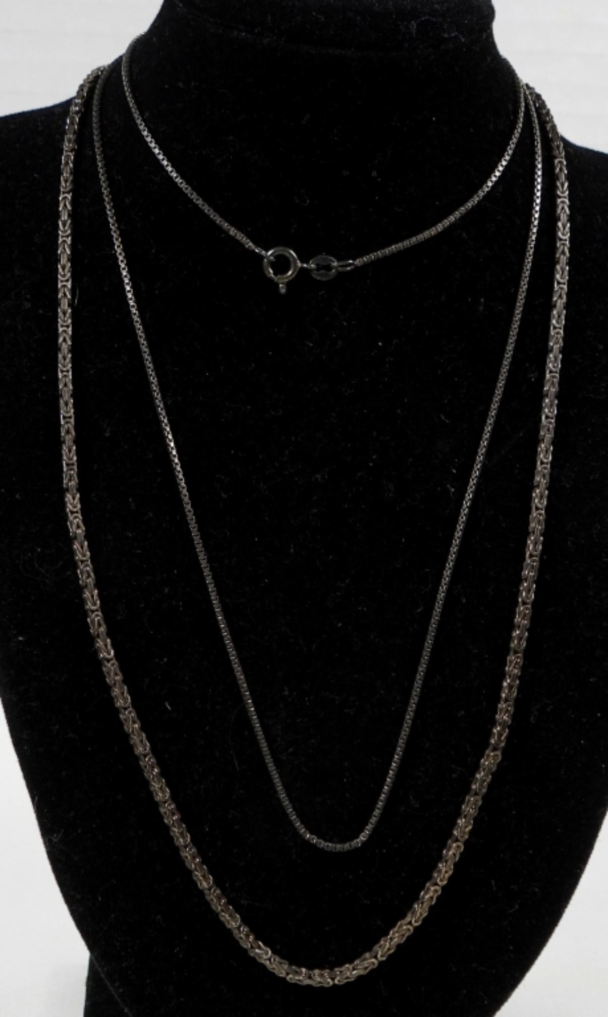 (2) DARK STERLING SILVER NECKLACES 17.5”-24” 8” DARK STERLIGN SILVER BRACELET DWT (16)