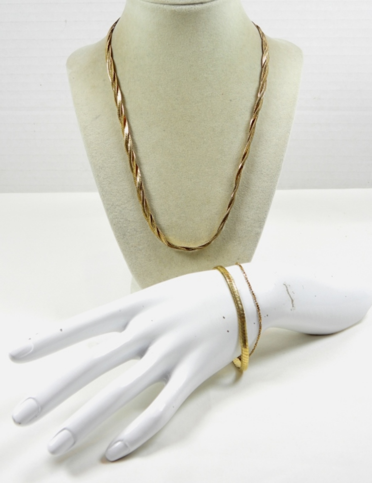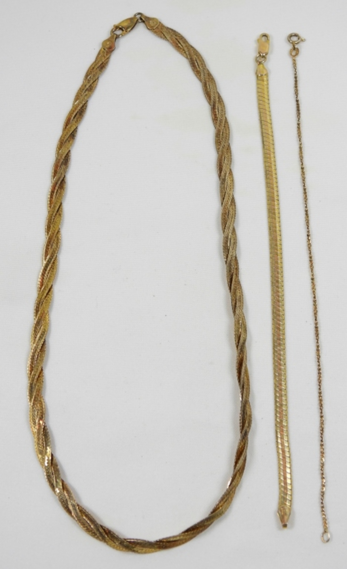 (2) GOLD COLORED 8” BRACELETS (1) GOLD COLORED 19” NECKLACE DWT (20.1)