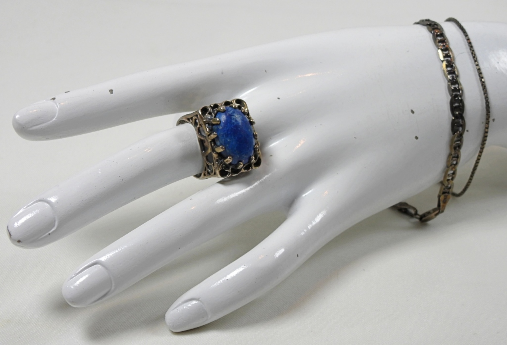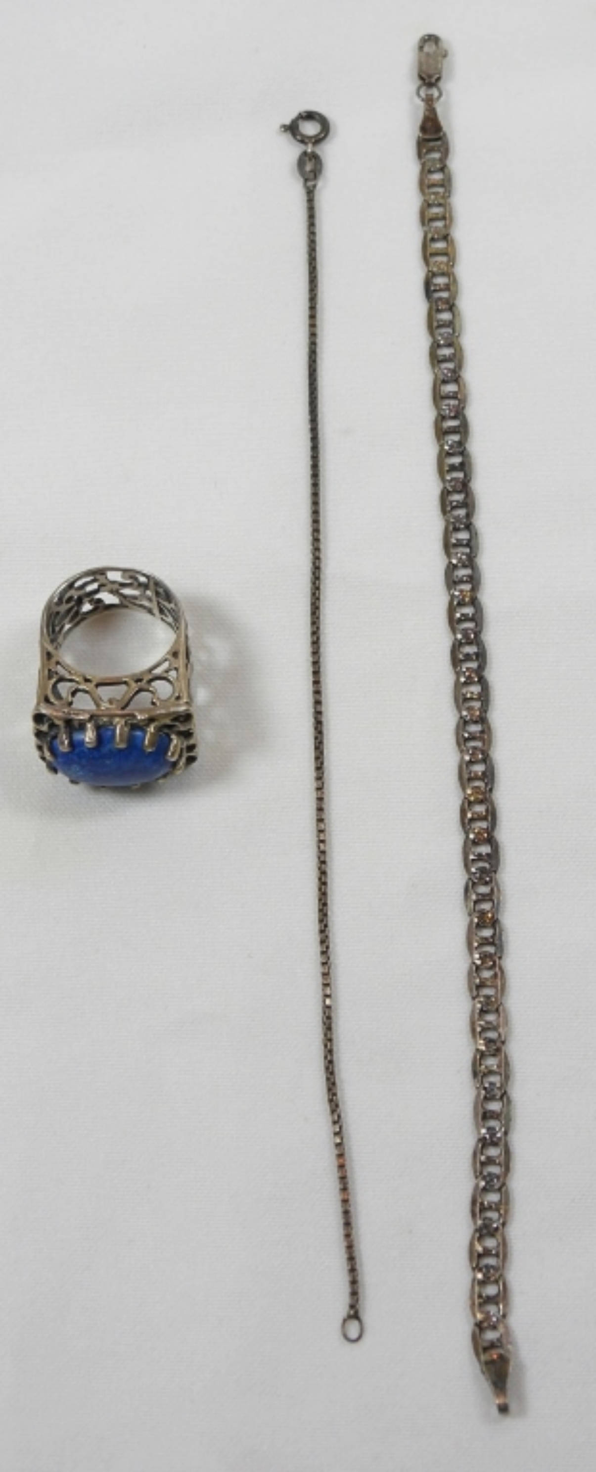 (2) 8” BRACELETS (1) SIZE 7.5 BLUE GEM STONE RING DWT (11.3)