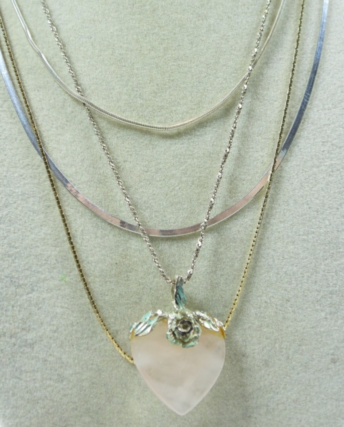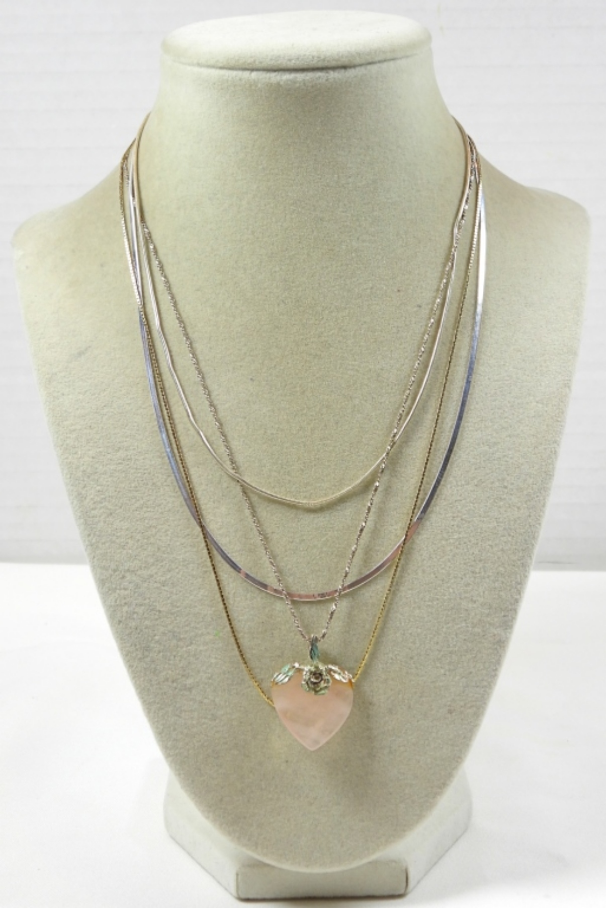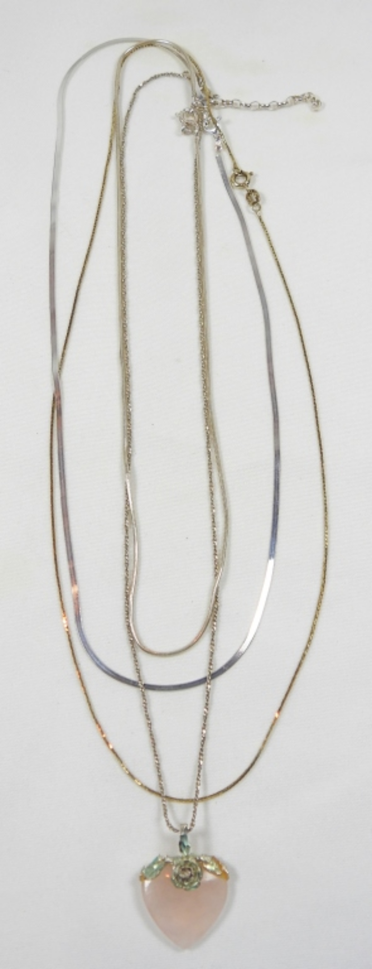 (4) VARIETY 18” NECKLACES, PINK GEM STONE HEART DWT (9.9)
