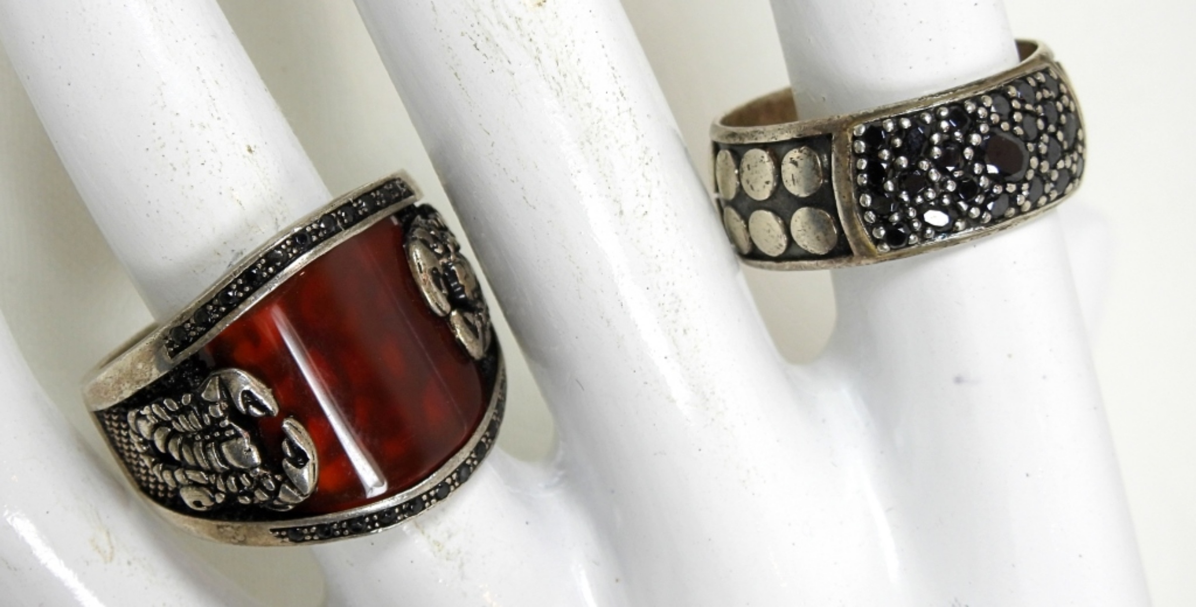 14DWT, BOTH STAMPED 925 SIZES 11-12, MARCASITE STONES ON BOTH